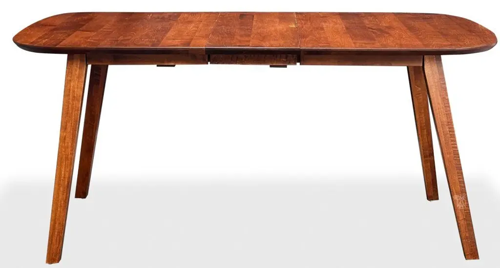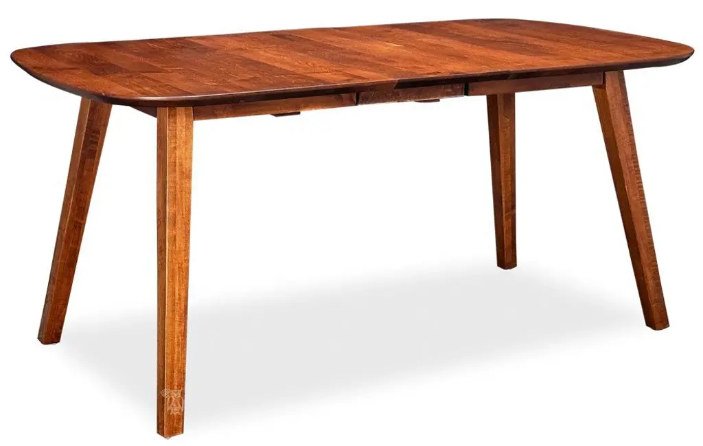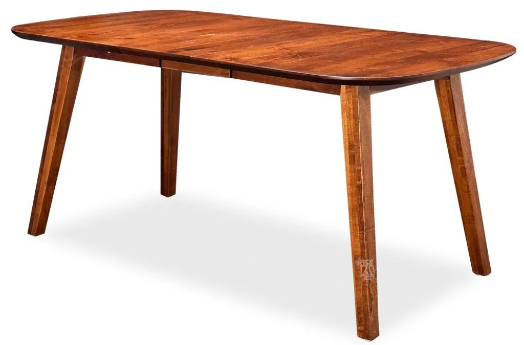 Amish Crafted Solid Maple Wood Callie Modern 78" Long Extension Leg Table in Michaels Finish. This item is stocked in Michaels finish or special order in your choice color. Constructed of solid maple wood. Table features rounded corners, and priced with two removable 12" wide extension leaves (images with two leaves will be updated soon). Tables feature solid wood extension glides. Order options (contact the showroom for pricing for other sizes): 36" x 54" solid top 36" x 54" w/ one 12" leaf = 66" long 36" x 54" w/ two 12" leaves = 78" long 36" x 66" solid top Choose color: 11 standard colors and option to two-tone stain with white or black Amish Essentials is a select offering of hand-crafted Amish furniture, built in the USA from American hardwoods and distributed by Archbold Furniture. Amish Essentials aims to provide the traditional quality of Amish craftsmanship at an exceptional value in a straightforward offering. These tables feature solid wood extension glides. Each piece is hand-stained by the Amish in your choice of color and sealed with a high-quality performance finish offering excellent moisture and heat resistance. No particle board. Matching chairs sold separately. Table requires assembly in room. Made in the USA. Manufacturer: Amish Essentials distributed by Archbold Furniture.