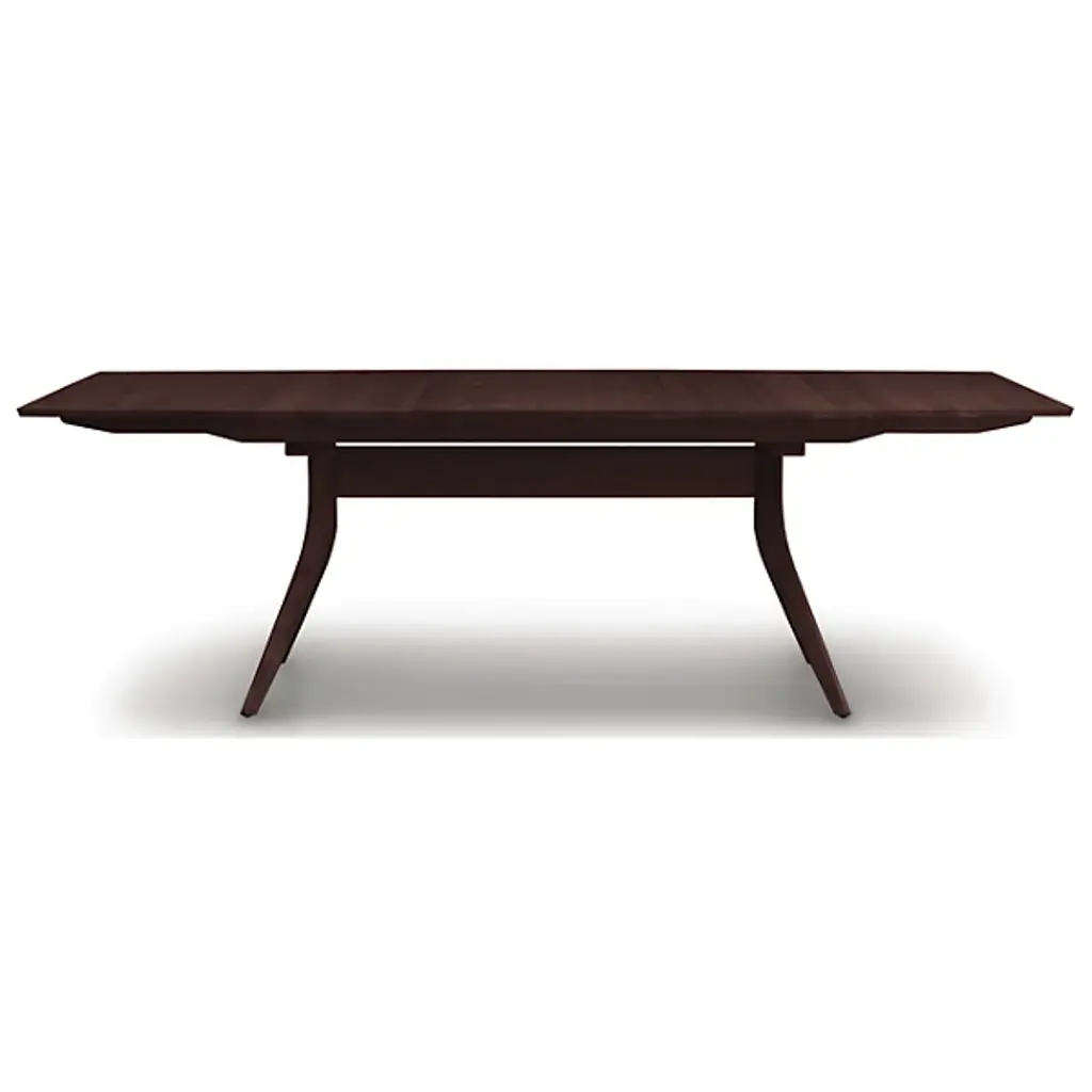 A well-crafted table designed for larger dining spaces to seat a crowd, the Audrey Extension Dining Table from Copeland Furniture combines quality craftsmanship with natural beauty for a high-end dining table design. Crafted right here in the United States from solid American black walnut or cherry wood, this dining table showcases a double X formation creating visual appeal beneath the table as well as providing a rigid base that gives diners plenty of unobstructed leg room. Open up the extension when extra guests stop by and pair with a coordinating solid wood seat or upholstered option for a beautiful and welcoming meal at home. Features