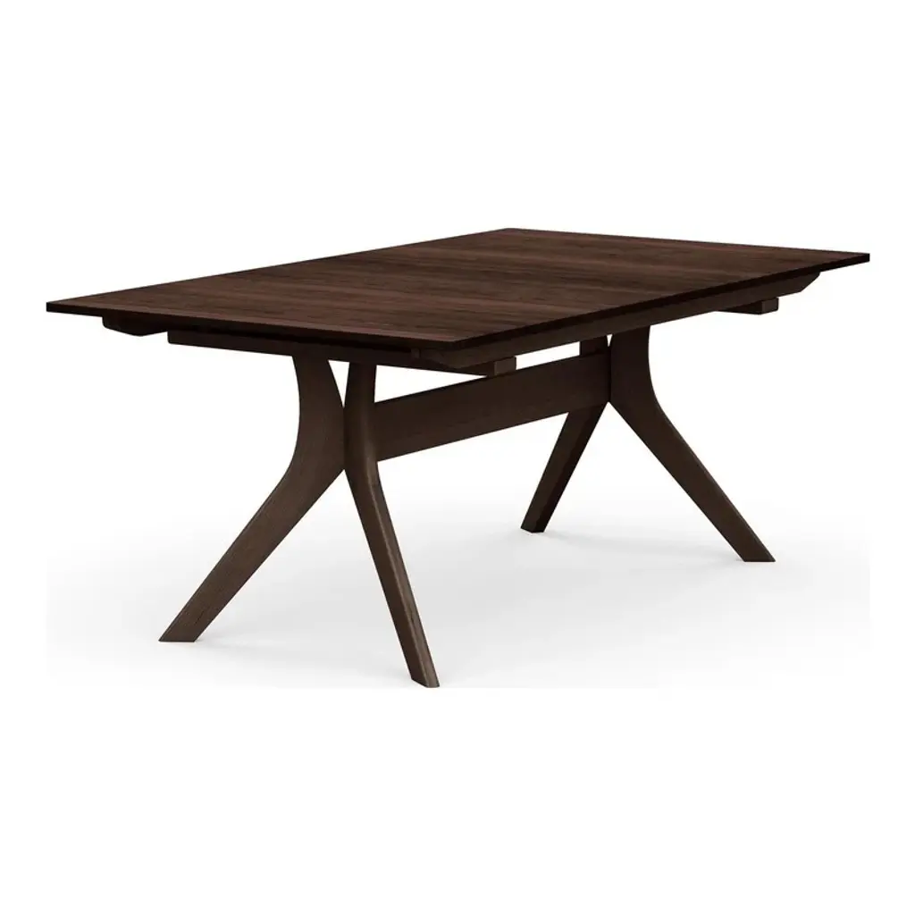 A well-crafted table designed for larger dining spaces to seat a crowd, the Audrey Extension Dining Table from Copeland Furniture combines quality craftsmanship with natural beauty for a high-end dining table design. Crafted right here in the United States from solid American black walnut or cherry wood, this dining table showcases a double X formation creating visual appeal beneath the table as well as providing a rigid base that gives diners plenty of unobstructed leg room. Open up the extension when extra guests stop by and pair with a coordinating solid wood seat or upholstered option for a beautiful and welcoming meal at home. Features