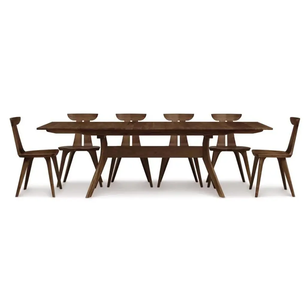 The double ‘X’ formation of the Audrey Dining Table trestle creates a state of dynamic tension giving the design a rigid base that provides diners with plenty of unobstructed leg room. Tables and Buffets are available in a number of sizes and configurations to meet the needs of almost any dining space. The Audrey Dining Room is crafted in solid American black walnut or cherry hardwood with natural finish. Features