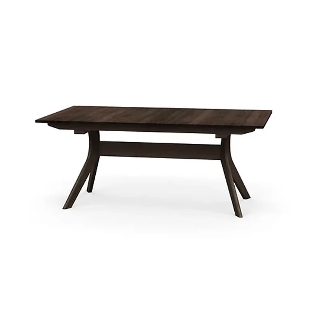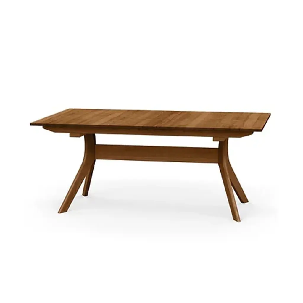 The double 'X' formation of the Audrey Wood Extension Table trestle creates a state of dynamic tension giving the design a rigid base that provides diners with plenty of unobstructed leg room. The eye-catching table opens with a single 24” self equalizing, ball bearing extension leaf. The self-storing butterfly leaf mechanism allows for single handed operation to easily expand or close the table in a matter of seconds.Audrey Wood Extension Table is crafted in solid cherry or solid American black walnut with a range of sizes and natural wood finish options. Copeland Furniture uses sustainably harvested hardwoods from the American Northern Forest. All lumber used by Copeland Furniture comes from within 500 miles of their factory in Vermont, thus reducing fossil fuel consumption and carbon dioxide emissions from transportation. The environmental values of preservation and stewardship are reflected in every piece of furniture produced by Copeland Furniture.