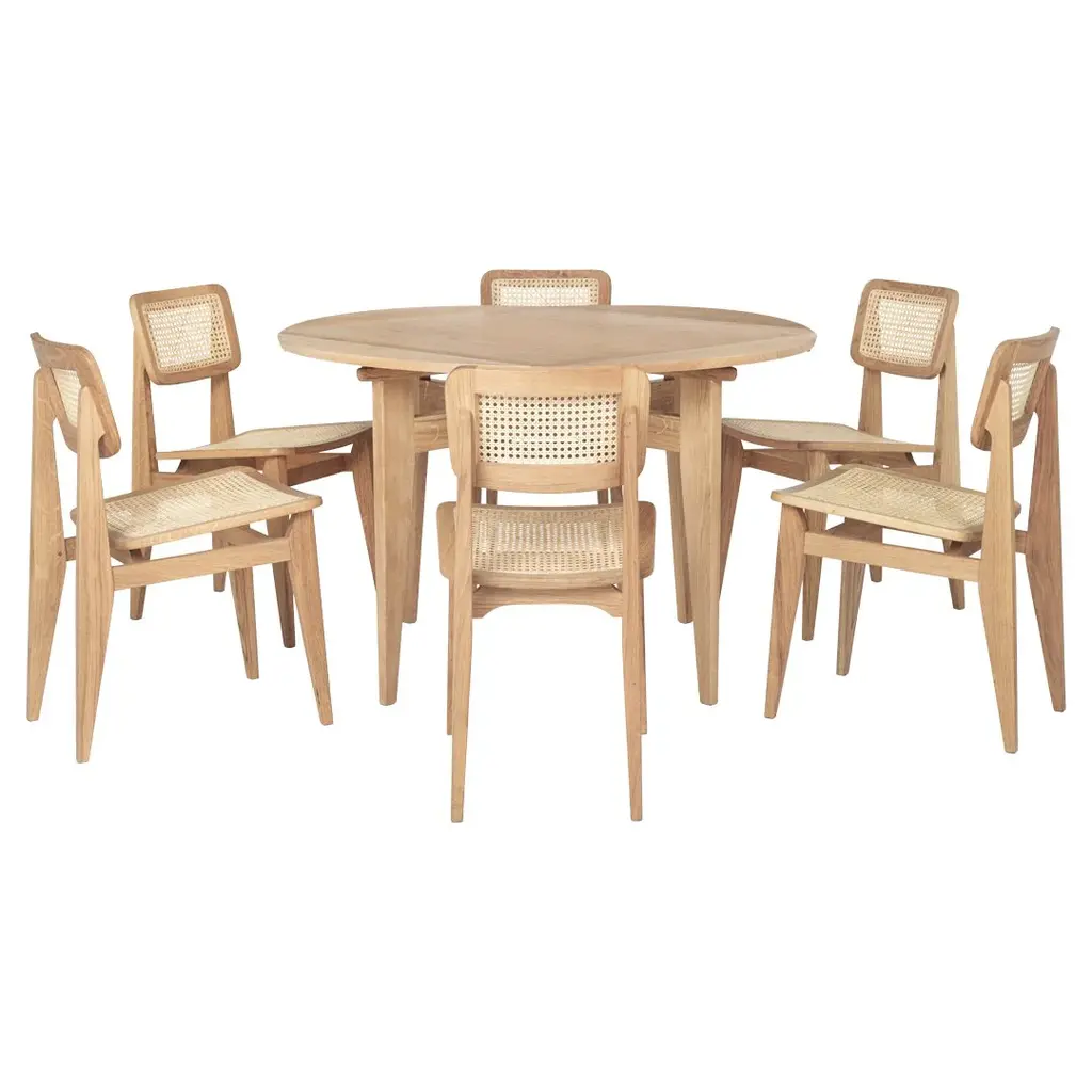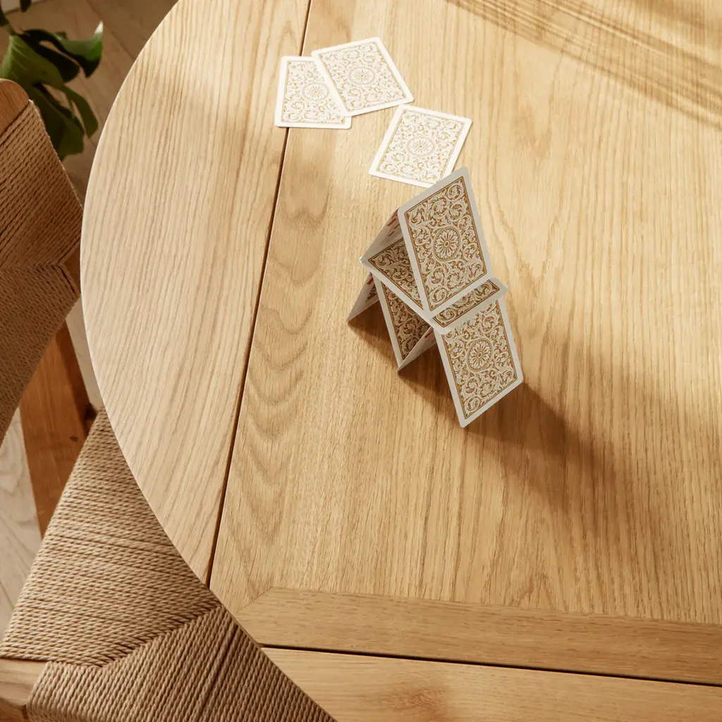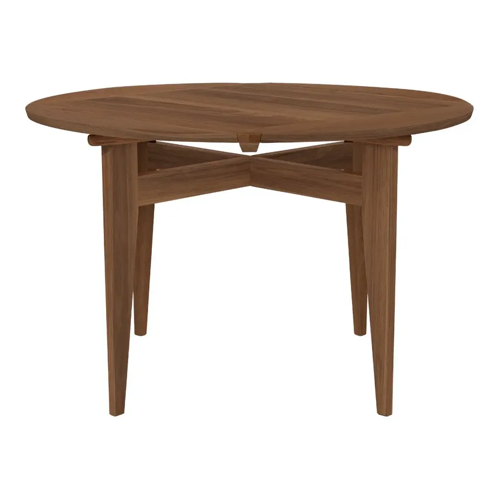 Ingenuity, elegance and flexibility define this postwar design classic reimagined for modern homes. A single fluid motion transforms a square work table into a round dining table for six. The 1950 B-Table was Marcel Gascoinâ€s innovative answer to the limitations posed by Franceâ€s compact postwar housing. Inspired by space-saving techniques typically found in boat design, Gascoin created two tables in one – a highly functional, yet beautifully refined, all-purpose solution. Streamlined by GUBI for modern homes, the new B-Table is both elegant and flexible – ideal for the multi-tasking nature of our everyday lives, especially when space is limited. Using the clever magnetic mechanism, the shift between work, play and dining is an effortless task for one person. Available in oak or walnut frames, the B-Table is part of a unified Gascoin collection which includes the S-Table, C-Chair and Trèfle Stool. Crafted from wood, their elegant simplicity and limitless configuration allows them to work alongside many interior styles of home or office.