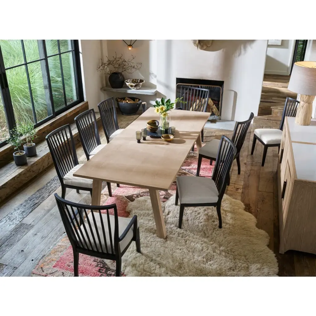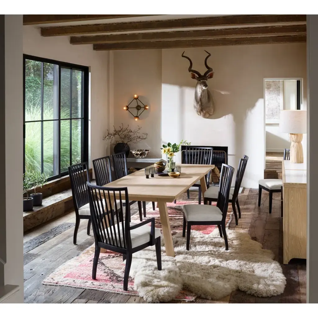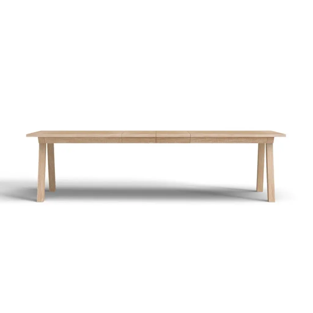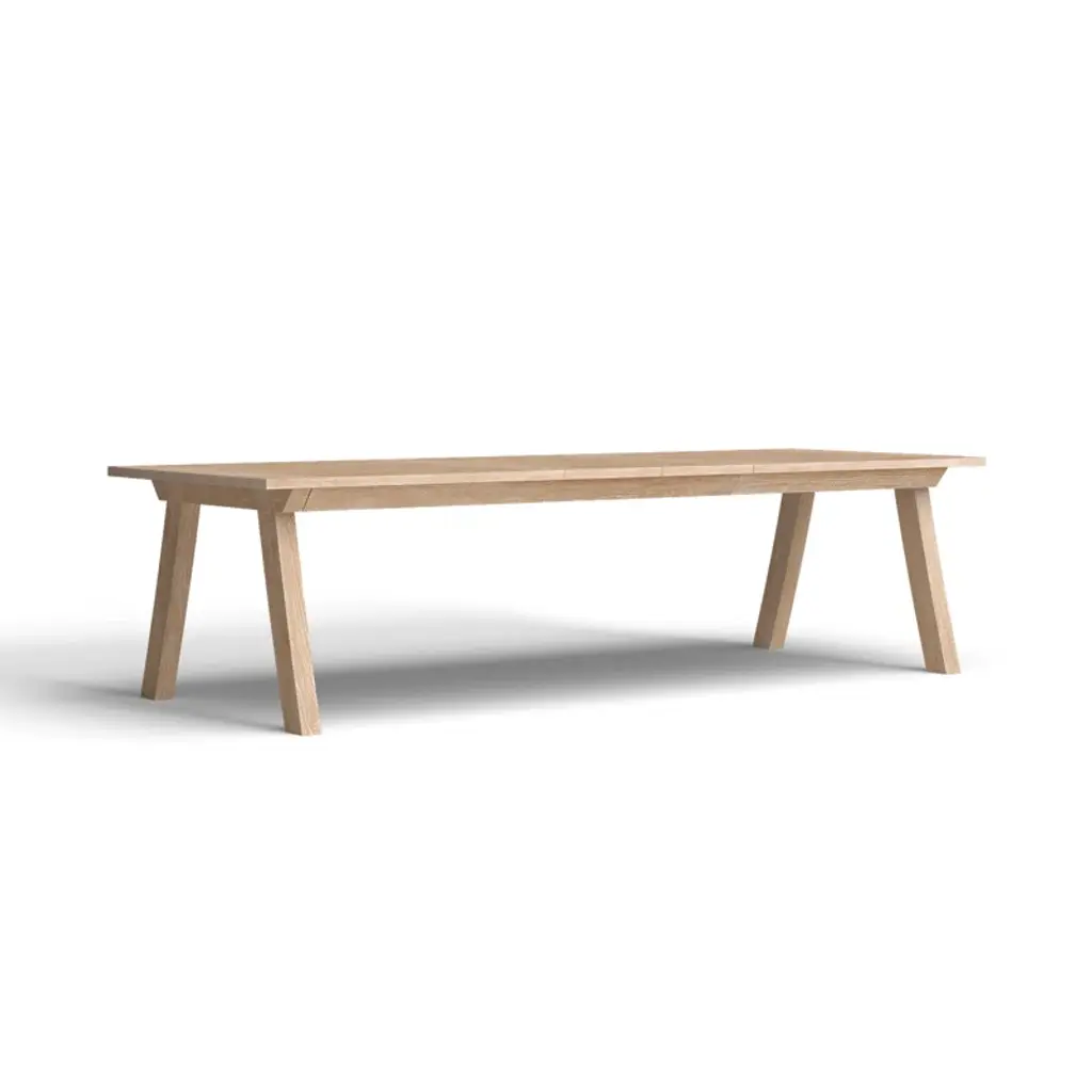 The Bilbrook dining table is a modern-rustic statement piece, featuring angled legs and a robust tabletop, all finished in a perfectly crisp white hue.