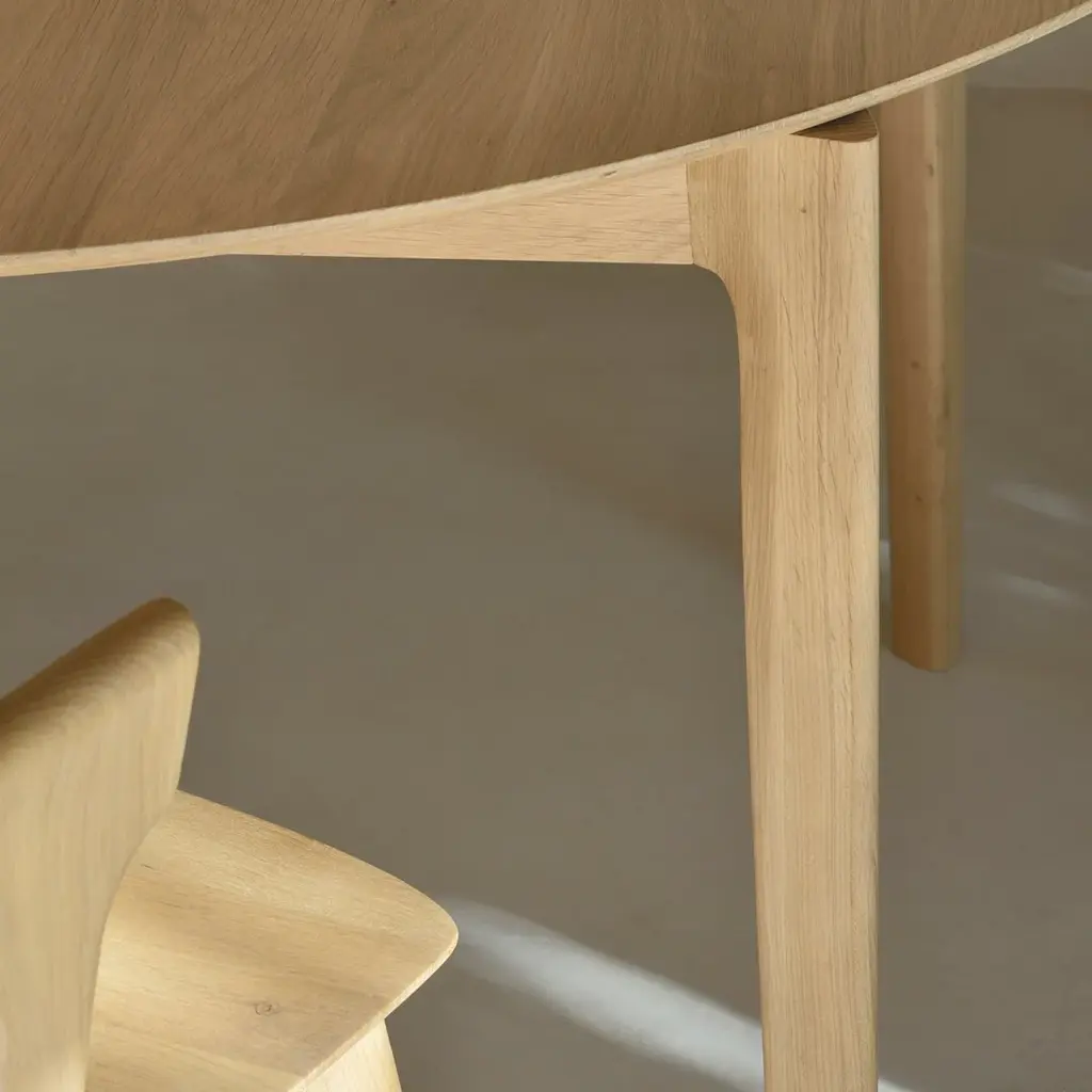 Reminiscent of a goat's curved horns, the Bok collection combines sculptural elegance and contemporary crafting into a graceful and airy form. The Bok solid oak round extendable dining table offers the perfect solution for adaptable dining within a smaller space. With an internally housed extension, the round four-seater easily adapts for more people. The Bok's iconic design and solid construction make for a timeless style to enjoy for years to come.