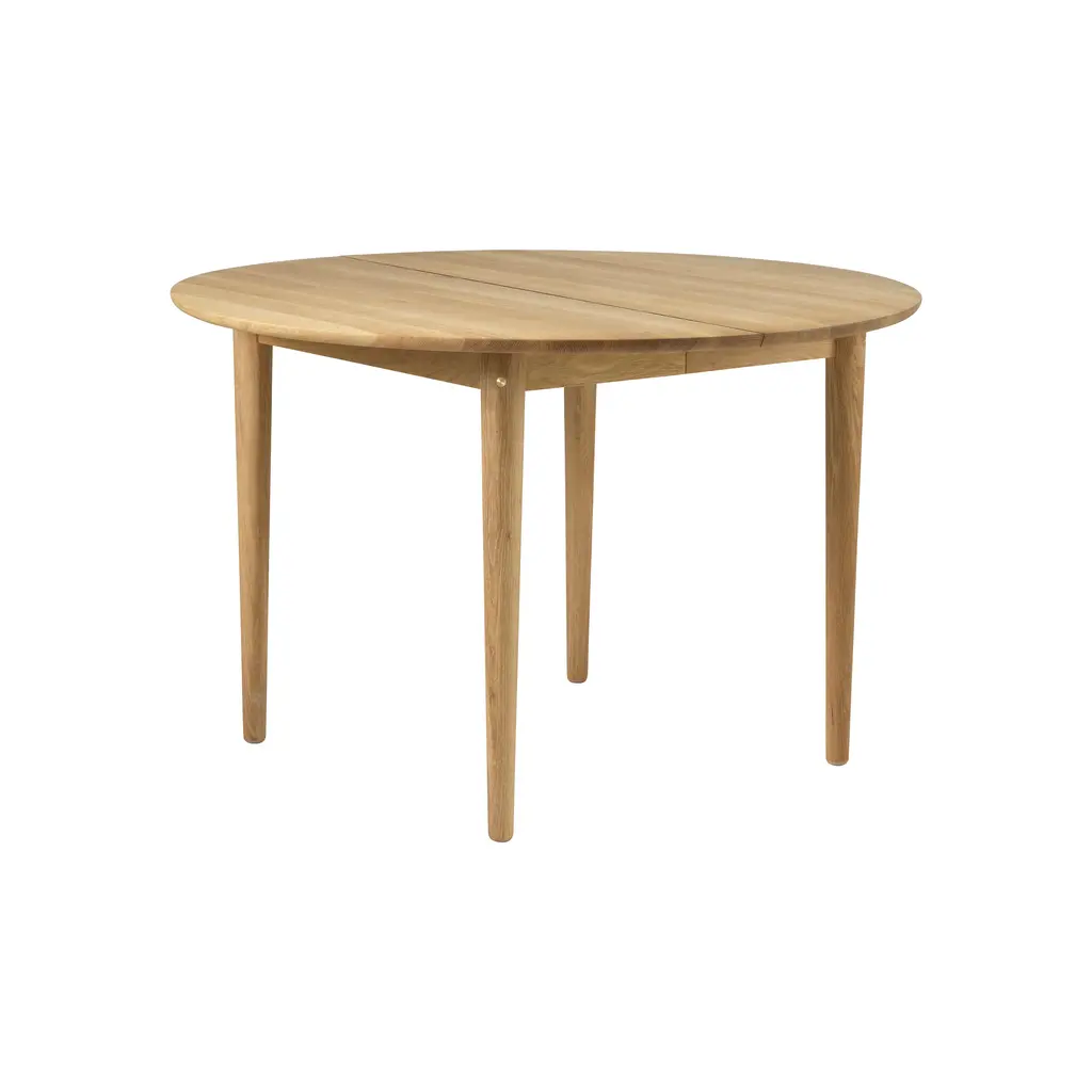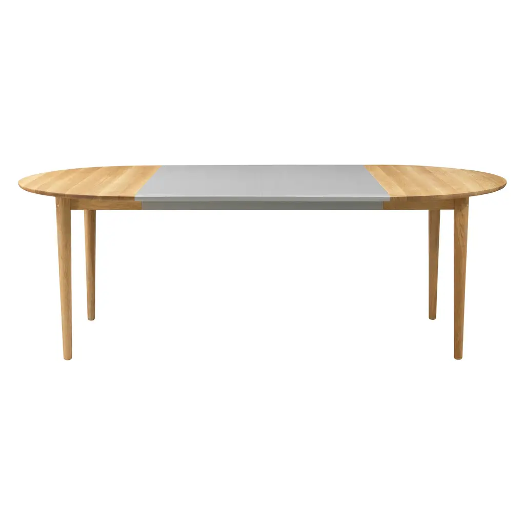 The C62E Bjork Extension Dining Table from FDB Mobler beautifully balances tradition and innovation, reflecting FDB Møbler’s design heritage. Crafted from solid, FSC®-certified oak, its rounded shape and natural wood grain create a contemporary yet timeless aesthetic. Suitable for both spacious dining rooms and compact urban kitchens, this table pairs effortlessly with classic dining chairs. Please note: extra leaves in natural oak must be purchased in pairs to ensure consistent wood quality. Highlights