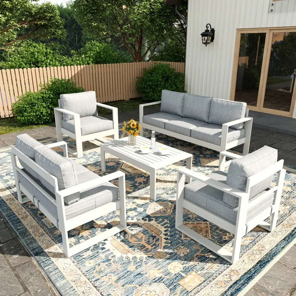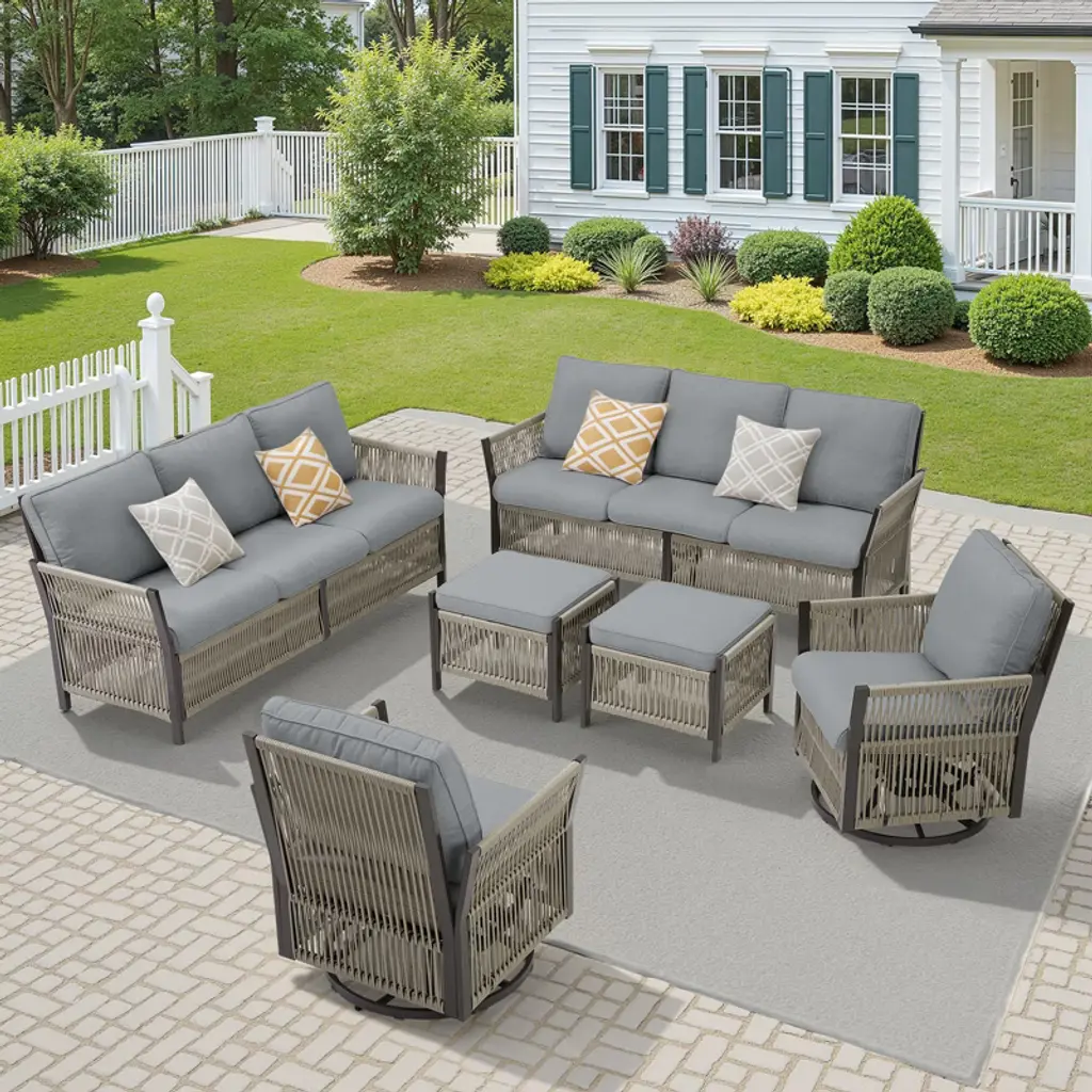 Captiva Designs 7Pc Outdoor Extension Slat-top Rectangle Steel Dining Table & Grayish Brown Padded Sling Chairs