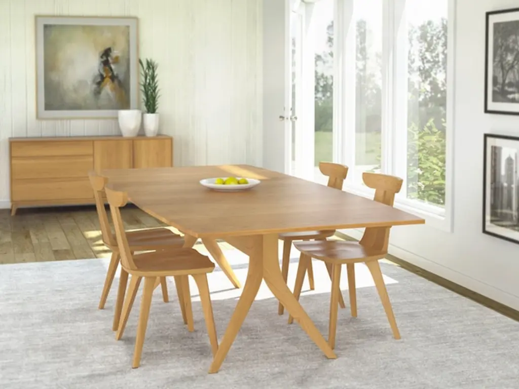 Combining the clean, unadorned lines of the International Modernists with organic and geometric forms, the Catalina Collection is suggestive of the works of America’s Mid-Century Modern designers. The times after WW11 were a time of uncertainty but also of great hope and progress. Designs of the period reflected that sense of hope and promise of an ideal future. In our current period, one finds comfort and nostalgia in Catalina’s retro-modern shapes and sensibilities. Combining the clean, unadorned lines of the International Modernists with organic and geometric forms, the Catalina Extension Table is suggestive of the works of America’s Mid-Century Modern designers. The times after WW11 were a time of uncertainty but also of great hope and progress. Designs of the period reflected that sense of hope and promise of an ideal future. In our current period, one finds comfort and nostalgia in Catalina’s retro-modern shapes and sensibilities. Catalina Tables are available and a number of different sizes perfect for any dining room configuration. Extension tables incorporate precision bearing glides and a self-storing butterfly leaf for effortless action. The Catalina Dining Room is crafted in solid cherry hardwood and Made to Order in several finishes. The Catalina Dining Room is also crafted in solid American black walnut with natural finish. Copeland Furniture began in 1976 after Tim Copeland left his job in wholesale lumber sales and began to build products, on contract, for Gardenway Research, a mail order catalog. Originally named T. Copeland & Sons, the company began as a one man operation located in a small garage on family property in South Corinth, Vermont. While it presents many challenges, there are still certain competitive advantage in domestic manufacturing. The people who build Copeland Furniture are our friends and neighbors. They can relate to the products they build. They take great pride in their jobs and it shows in their workmanship. Our employees work under an incentive program that rewards quality. All employees are empowered to refuse anything that comes to them that is not of acceptable quality. We stand behind our products. If we ship something that isn’t quite right or if it’s damaged in transit, we’ll make sure that your customer gets a perfect product. If it can’t be fixed we’ll make a new one to replace it. Proximity to our customers and Made-To-Order production allows us to offer shortened lead times and choices in knobs, pulls, and finishes.