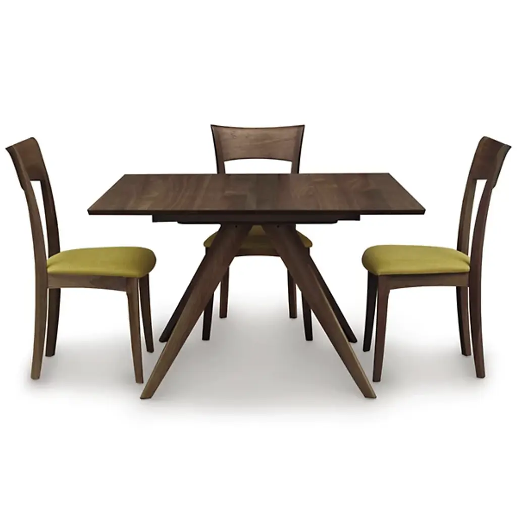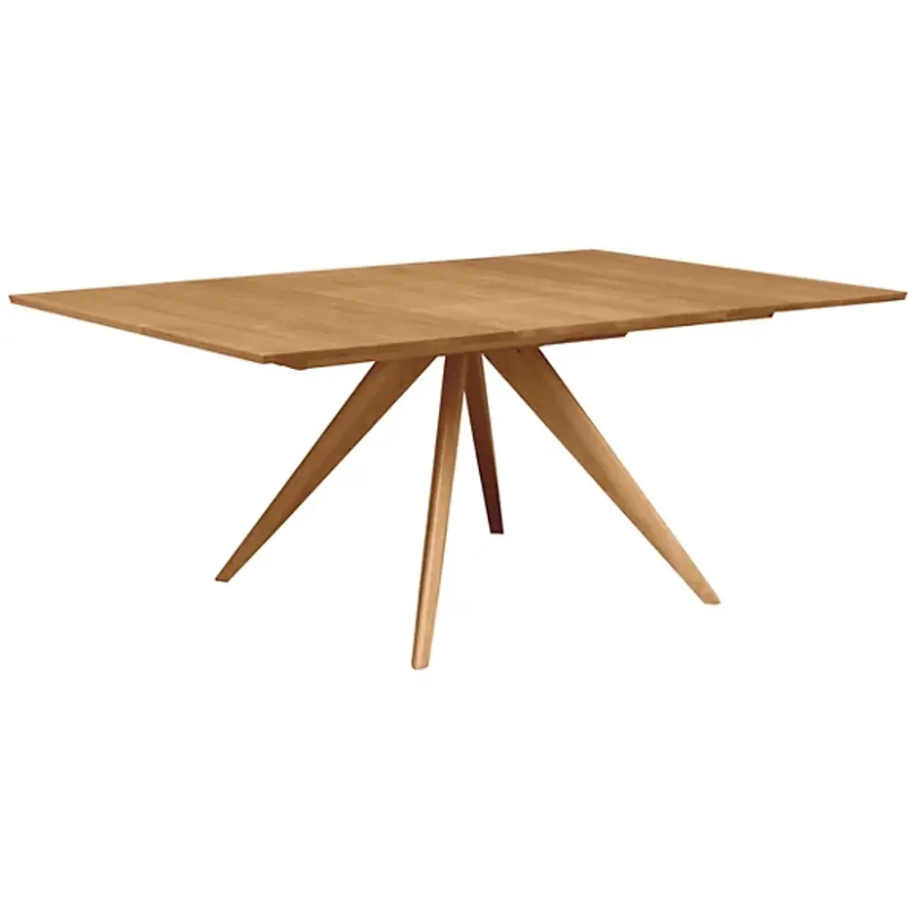Brilliant form born from traditional geometry. While there’s nothing new about a square tabletop, the Copeland Furniture Catalina Square Extension Table uses its dimensions to offer an unexpected design. Strong, angular legs extend from a central position under the table, creating excellent stability with a little linear flair. Both the main section and the legs are made of Solid Hardwood, giving the carefully crafted segments immense natural appeal. Even as the piece presents a clean, casual aesthetic, the underworkings offer an intricate and easy-to-use extending mechanism, complete with simple storage and precision bearing glides. The table marries simple charm and impressive functionality, making it an excellent choice for whichever room you choose to do your entertaining.