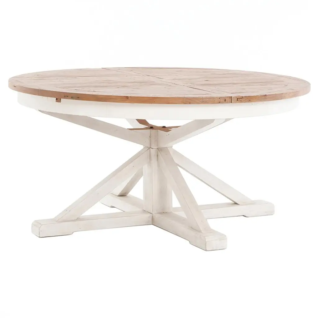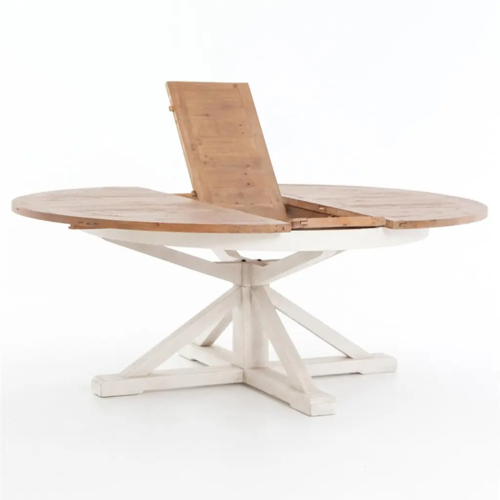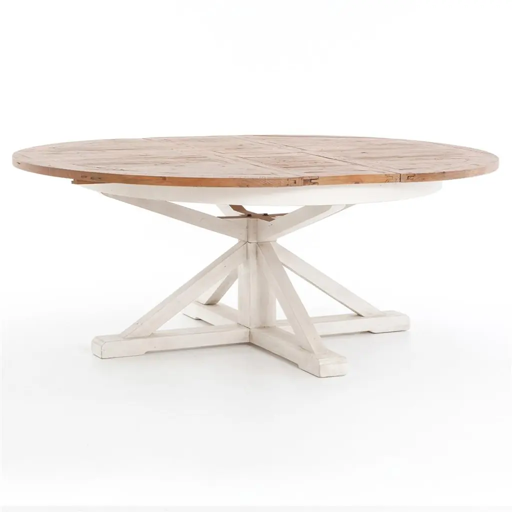 Chabert French Natural Top White Reclaimed Wood Extendable Dining Table - 63-79"w