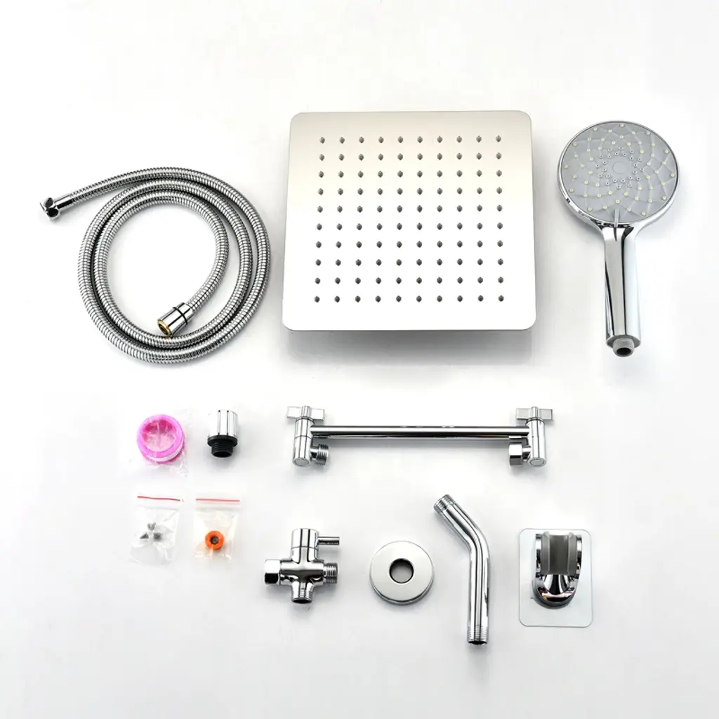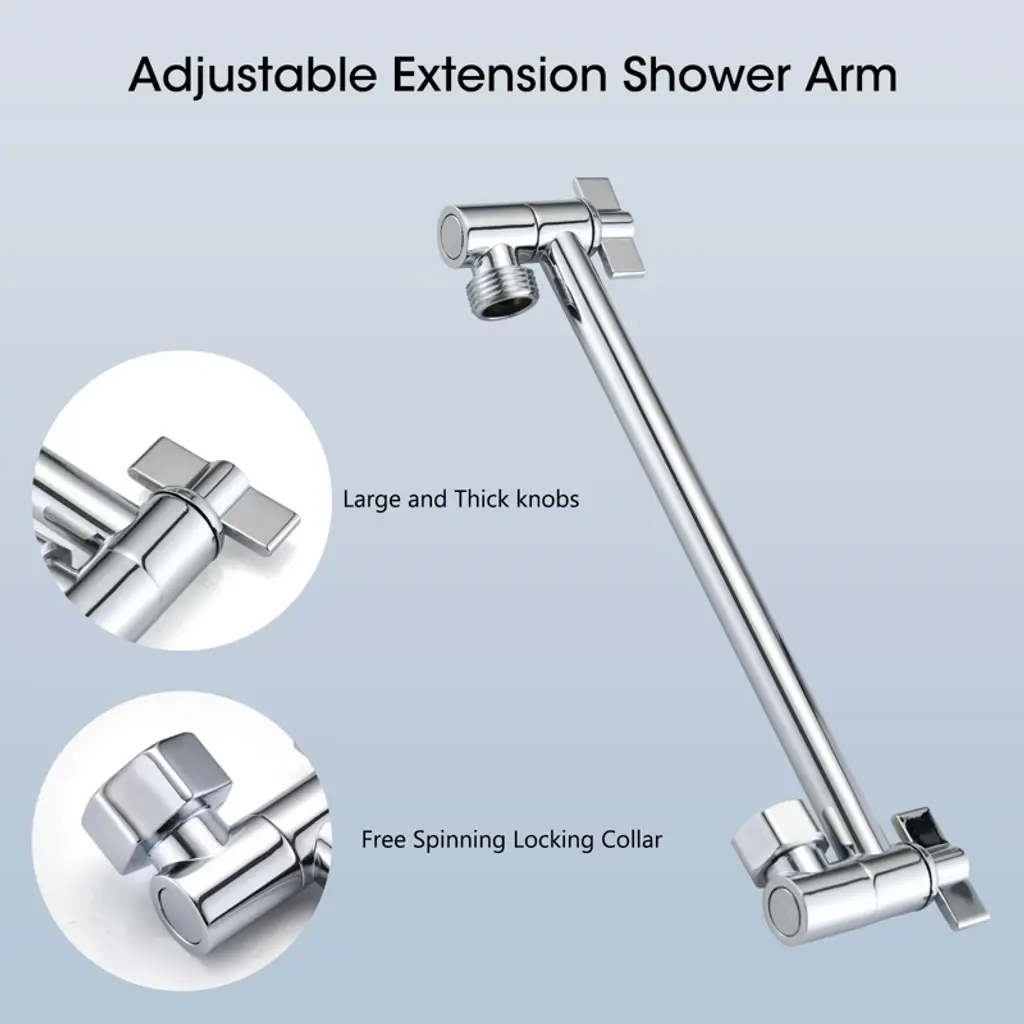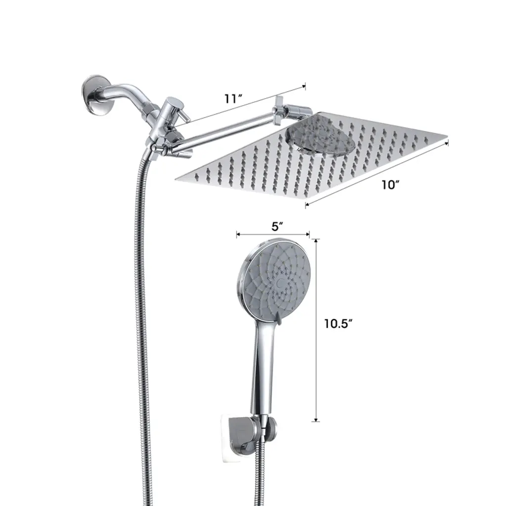 Chery Life 10" High Pressure Rainfall Shower Head Combo With 11" Extension Arm, 6 Settings Adjustable, Anti-leak, Height/angle Adjustable, Silver