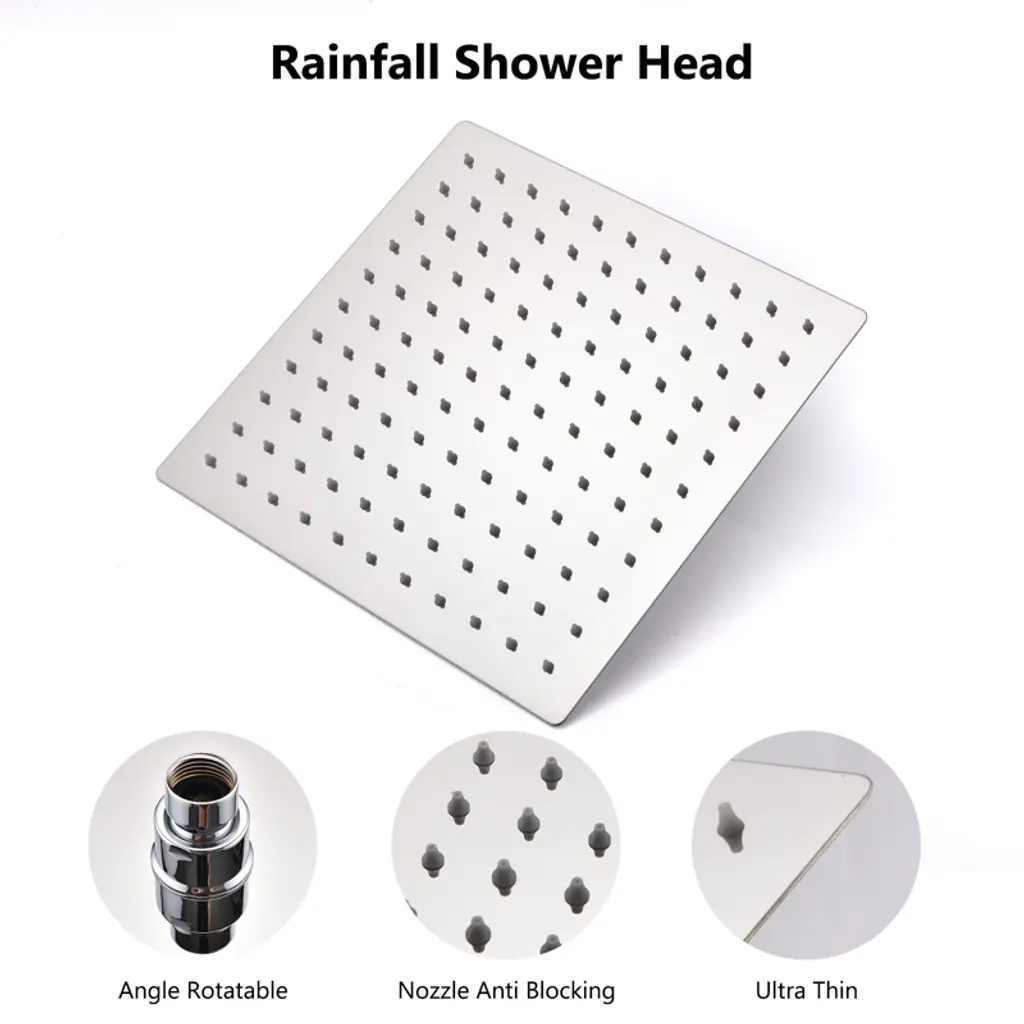 Transform your bathroom into a spa-like retreat with this stainless steel rainfall shower system, featuring a 10-inch wide showerhead with 100 self-cleaning silicone nozzles for a hotel-style water flow. The air-injection technology ensures a powerful, water-saving spray even in low-pressure areas, while the adjustable extension arm (11-inch length) lets you customize the perfect angle and height. The 6-mode handheld shower adds versatility with options like massage, mist, and jet streams—all crafted from rust-resistant stainless steel for long-lasting elegance.