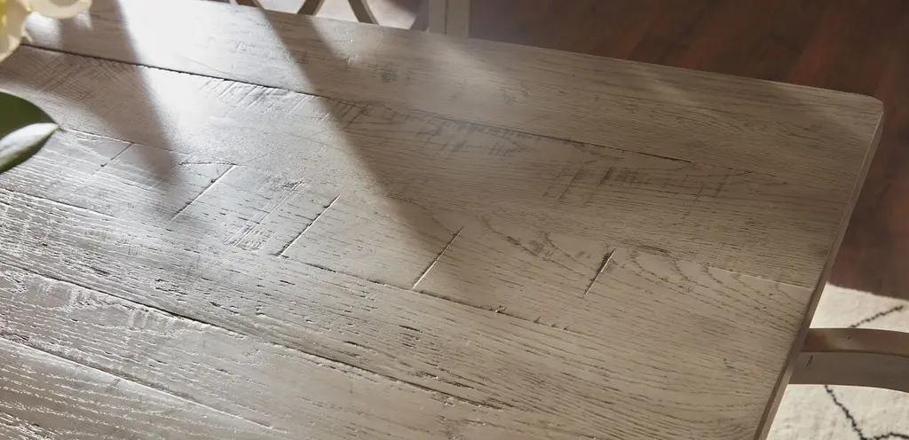 Gather around the Corin for everyday dinners and for special occasions with family and friends. This rectangular extension table comes with two leaves that add as many as four place settings, and its rough-sawn, plank-effect top has a modern farmhouse feel.