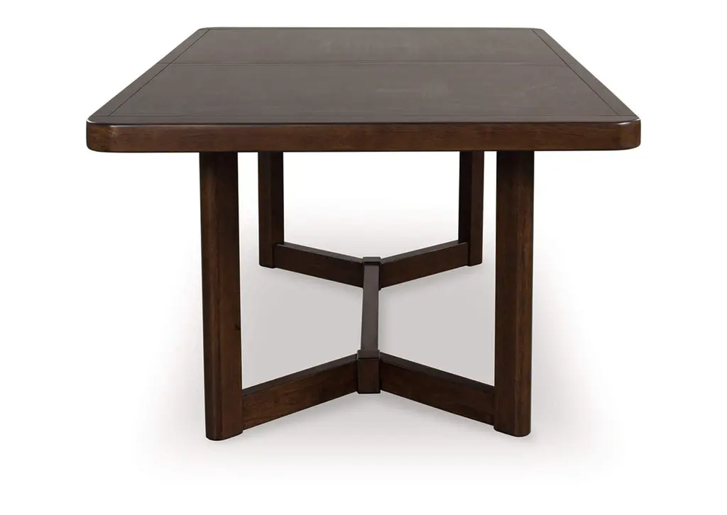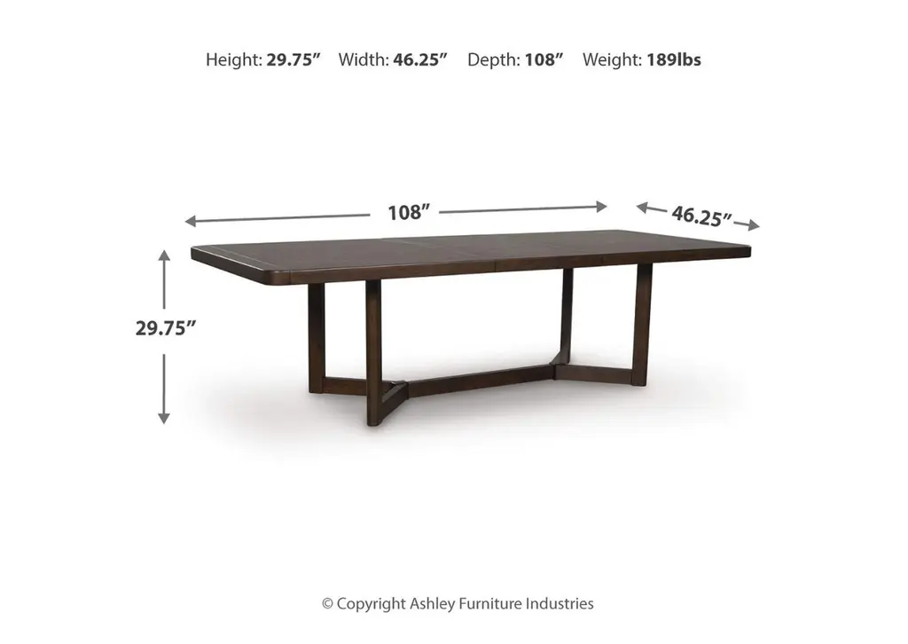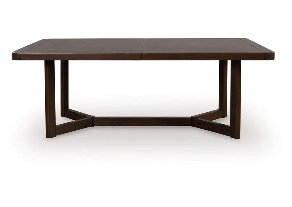 Casual contemporary styling with a decidedly modern vibe. This dining extension table dresses your dining spot in on-trend elegance with its rich warm brown finish. A softly rounded top frame and a fashionable double wishbone base beckon everyone to gather around. Now there’s a simply stunning show of great taste. Weight 212.000 lbs. (95.4kgs.)