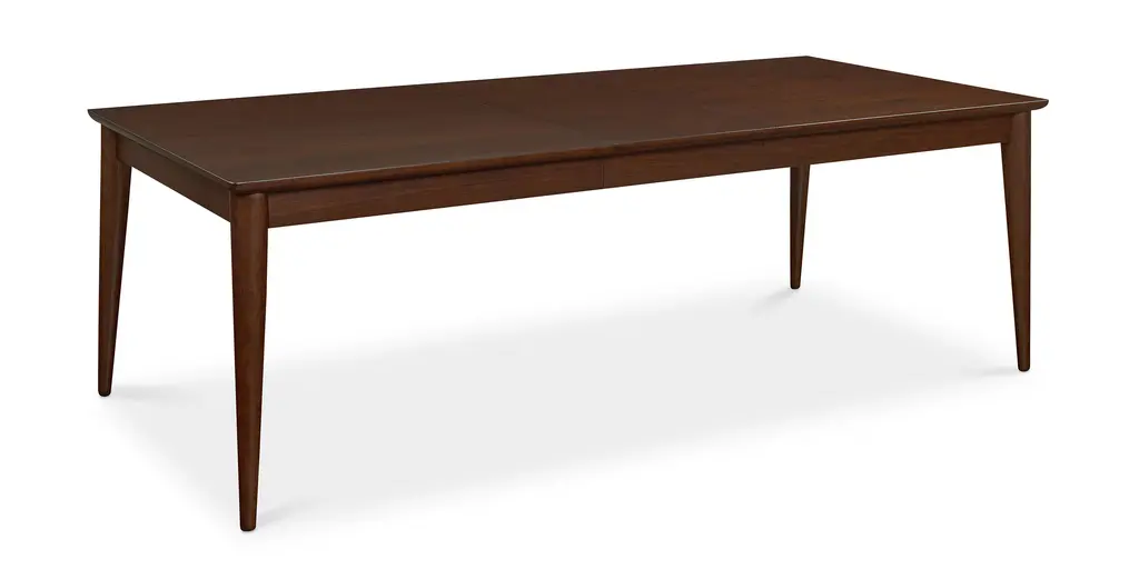 Go for a straightforward approach to dining with the Dinex Alfa Dining Table. Crafted in Denmark, the simple silhouette is a modernist take on true Scandinavian design. Slim legs perfectly support the table while ensuring maximum leg space for your family. Hidden leaves extend to make room for extra guests. *Both natural cherry wood and cherry veneer gradually darken with age and light exposure, revealing the inherent beauty of this material.