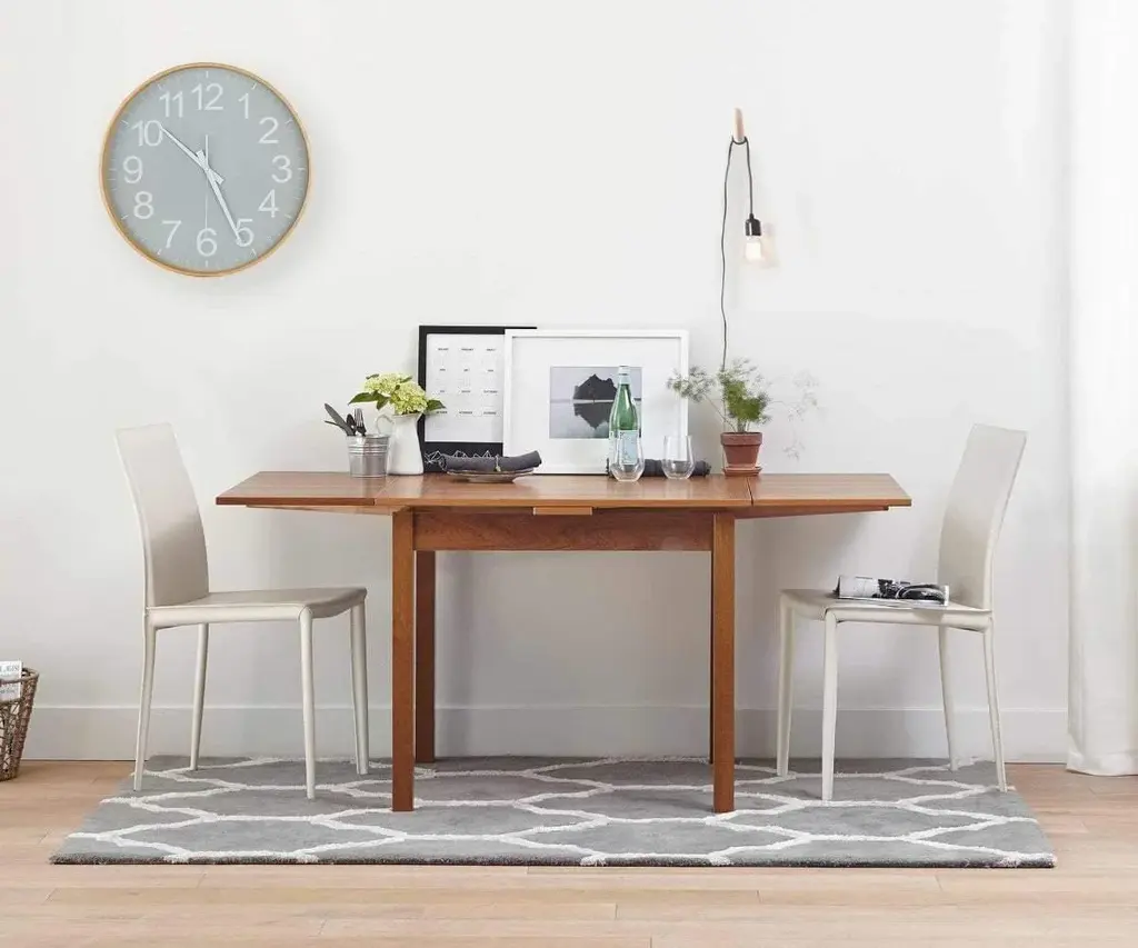 The Dinex Beta Dining Table is a simple solution for your casual dining space. This table offers simplicity and functionality with traditional Danish design and craftsmanship. Slim legs provide maximum space for seating. Hidden leaves below the square tabletop extend to allow for extra space or additional guests. *Both natural cherry wood and cherry veneer gradually darken with age and light exposure, revealing the inherent beauty of this material.