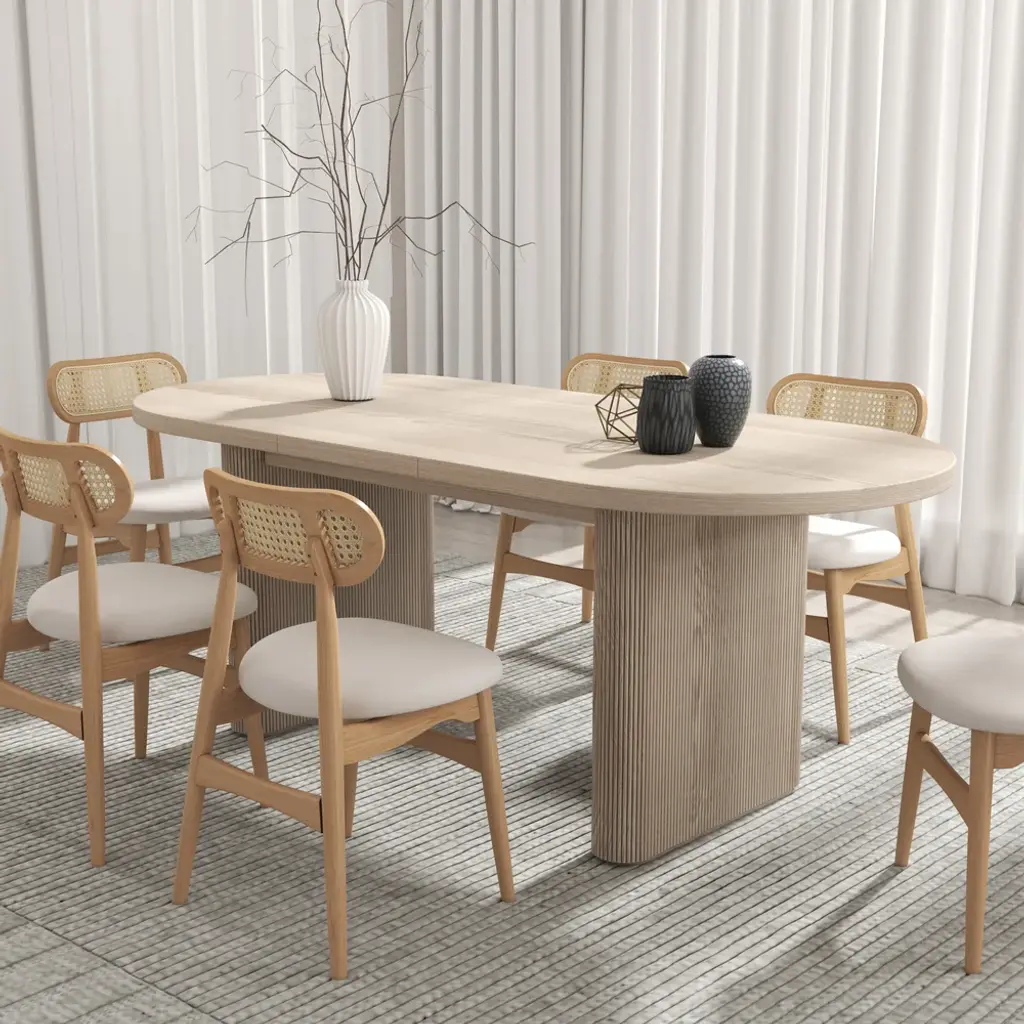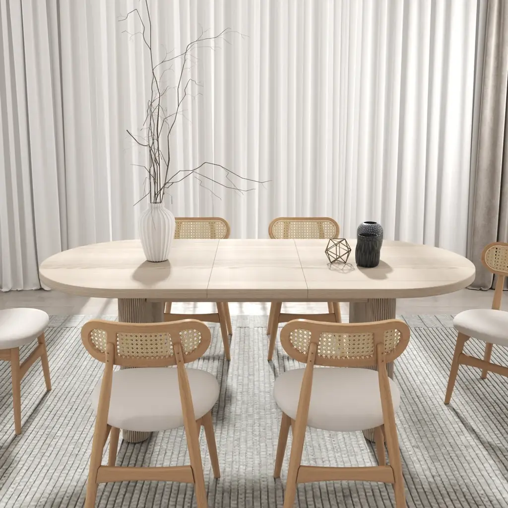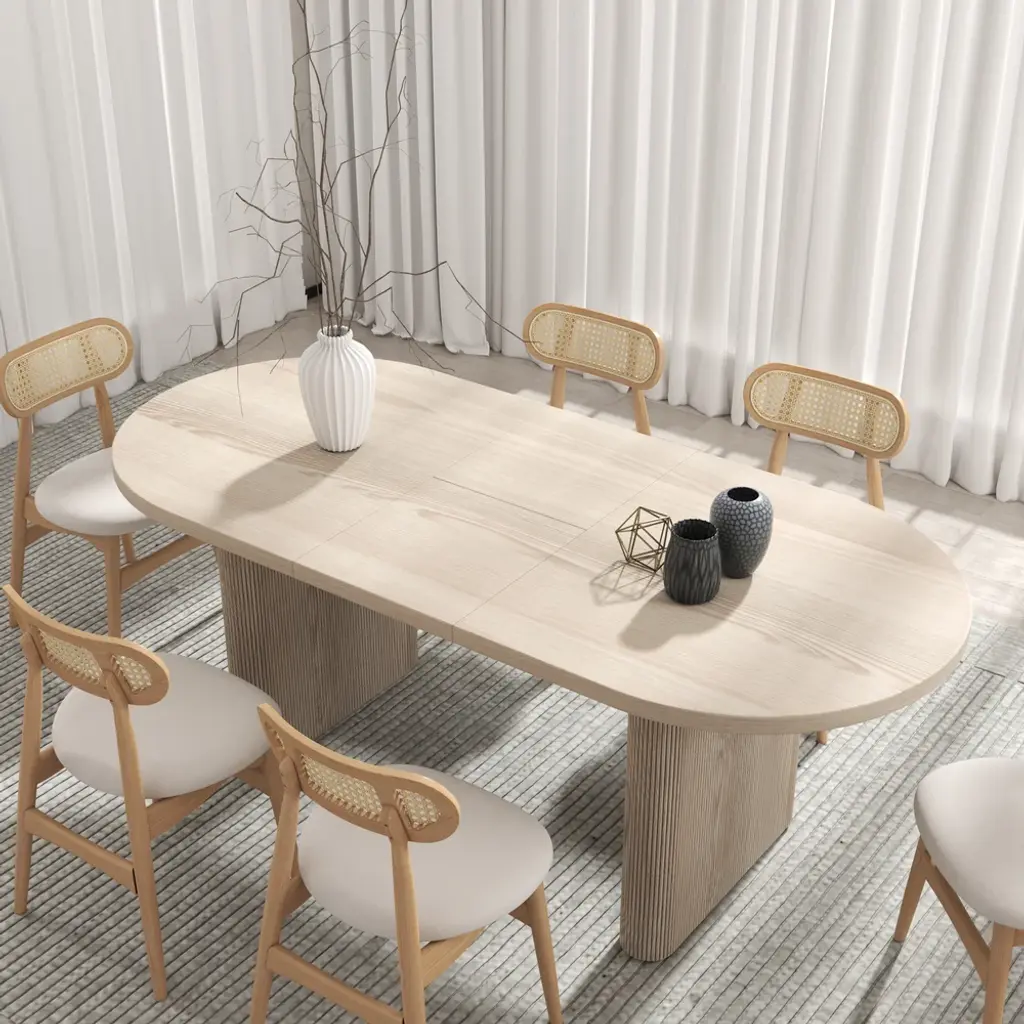 Dining Set 63"-79" Japandi Oval Extendable Dining Table Whitewash With 6 Chairs