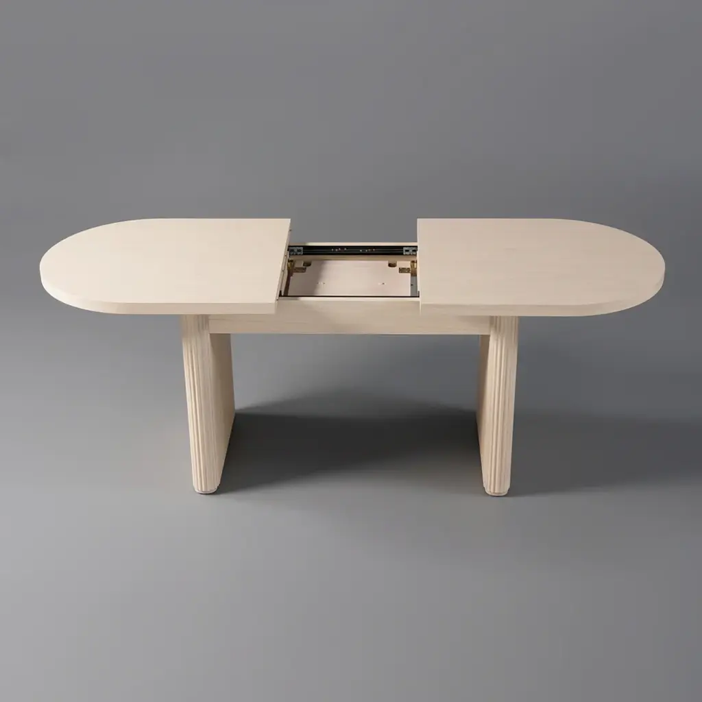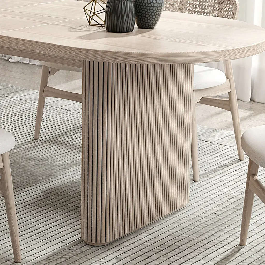 The Oval Extendable Dining Table is both stylish and functional. Featuring a washed white color scheme, the dining table comfortably seats 6 people and extends smoothly for larger gatherings. Perfect for rustic dining rooms or spacious kitchens.