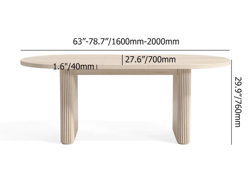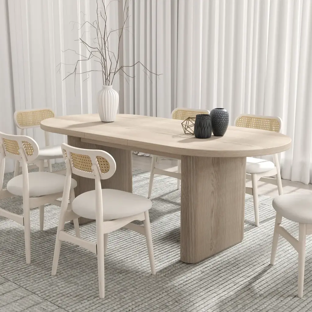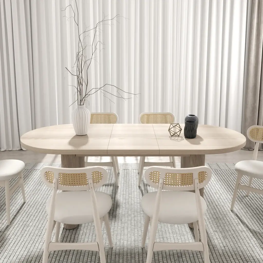 Dining Set 63"-79" Japandi Oval Extendable Dining Table Whitewash With 6 Chairs