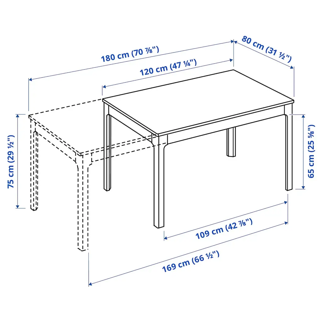 EKEDALEN Extendable table - white 47 1/4/70 7/8x31 1/2 ". The smart design means that the table top has no seams when you use the table without extending it. You can simply adjust the length to make space for all types of activities like homework, drawing or playing games with the kids. Seats 4-6.