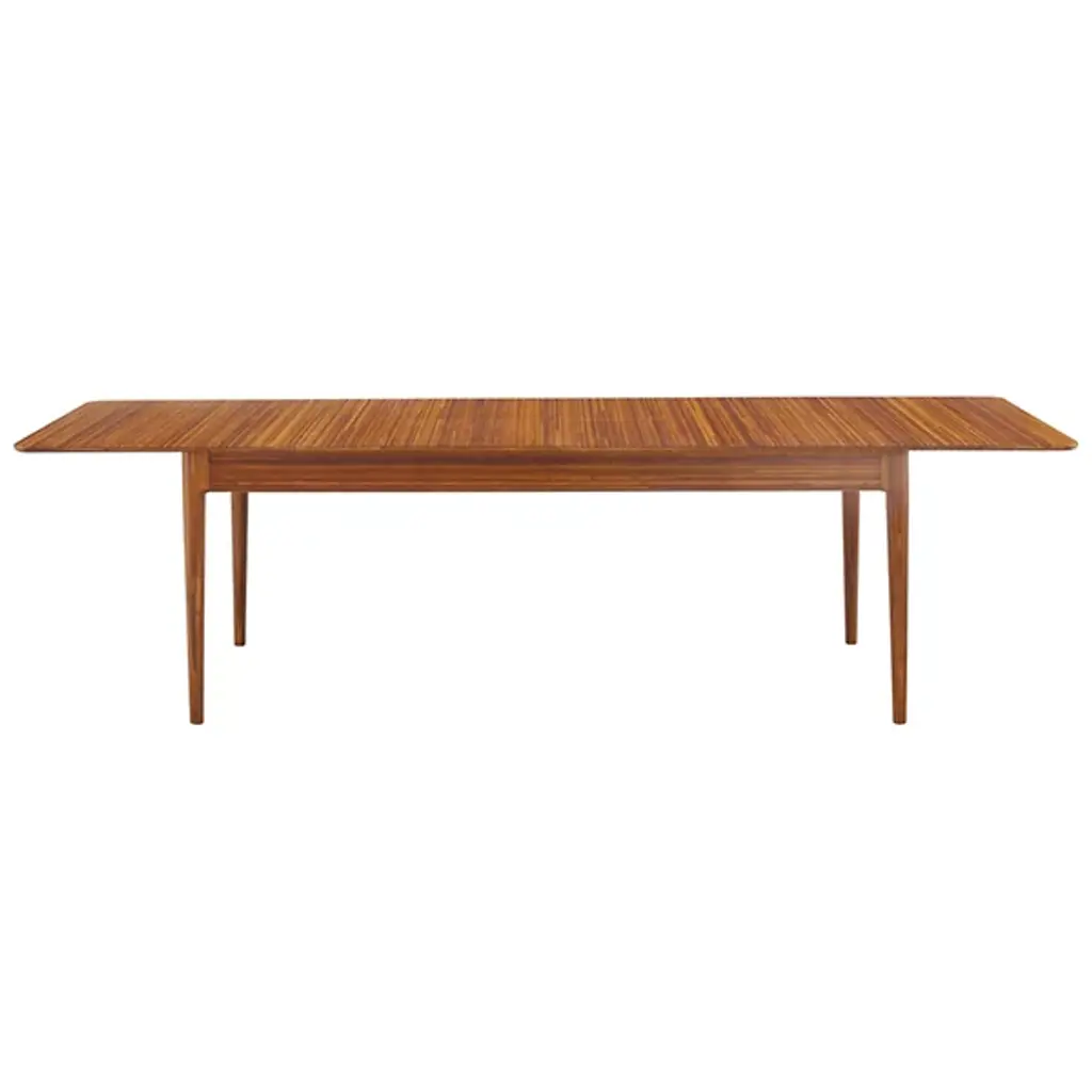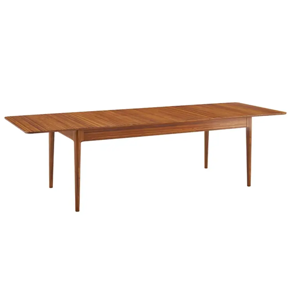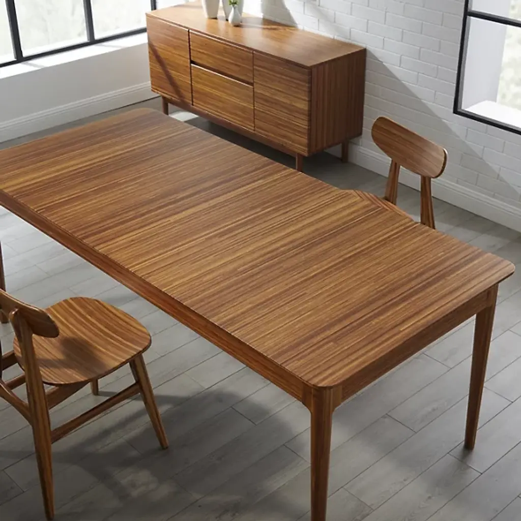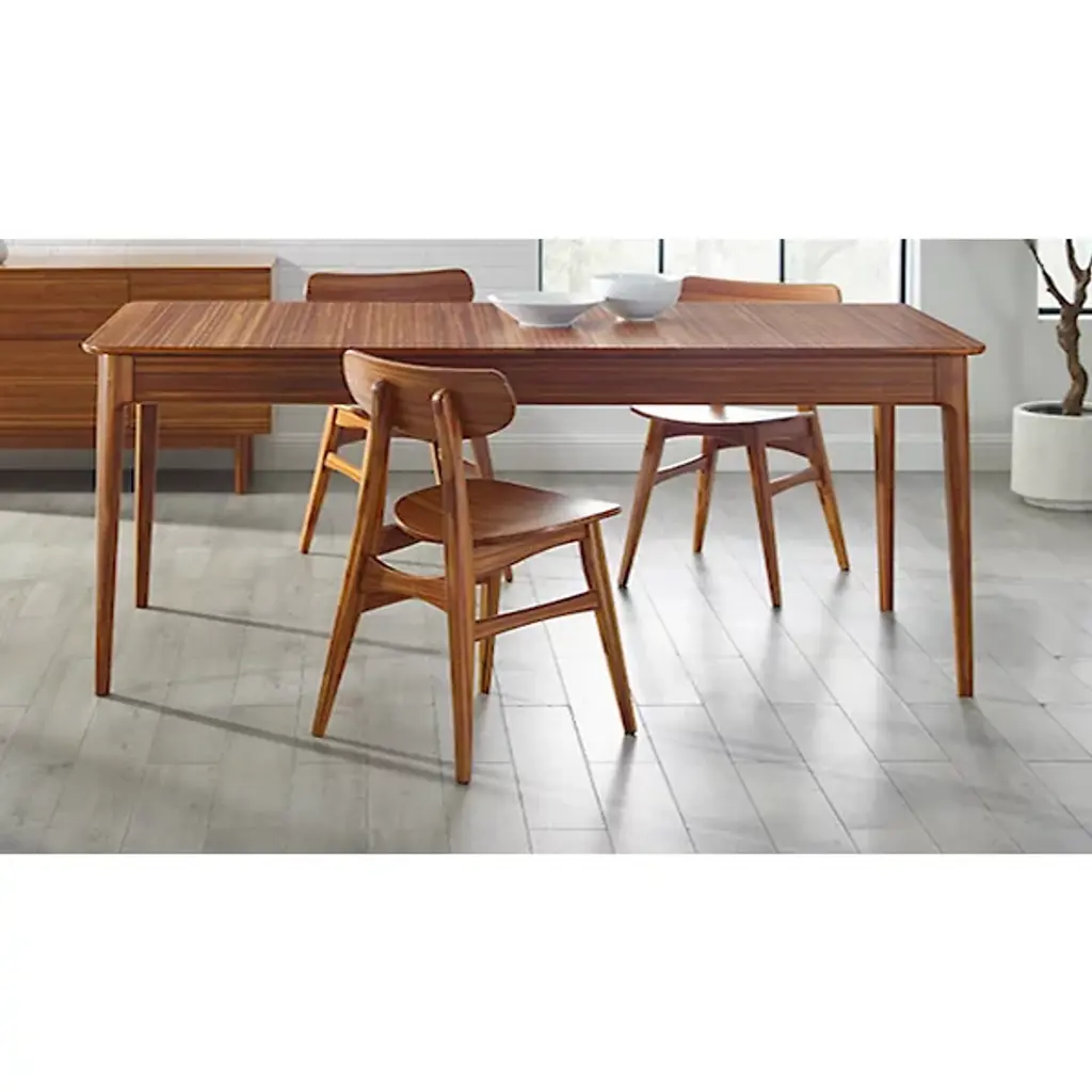Expand your living and dining spaces with the appealing intricacy of the Erikka Double-Leaves Extendable Dining Tablee from Greenington. An appealing, authentic piece made from tough and sustainably harvested bamboo, it starts with four tapered legs that ascend to a curve-cornered rectangular top, concealing two leaves that can slide out from its center to support additional diners with ease. A proprietary heat-treating process uses steam and pressure to give each table an individual amber grain that enhances its stylish modern design.