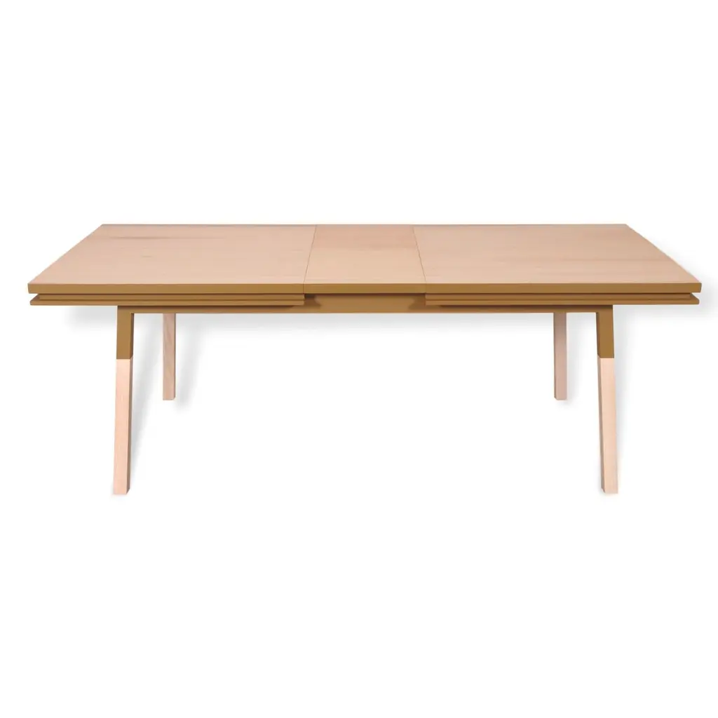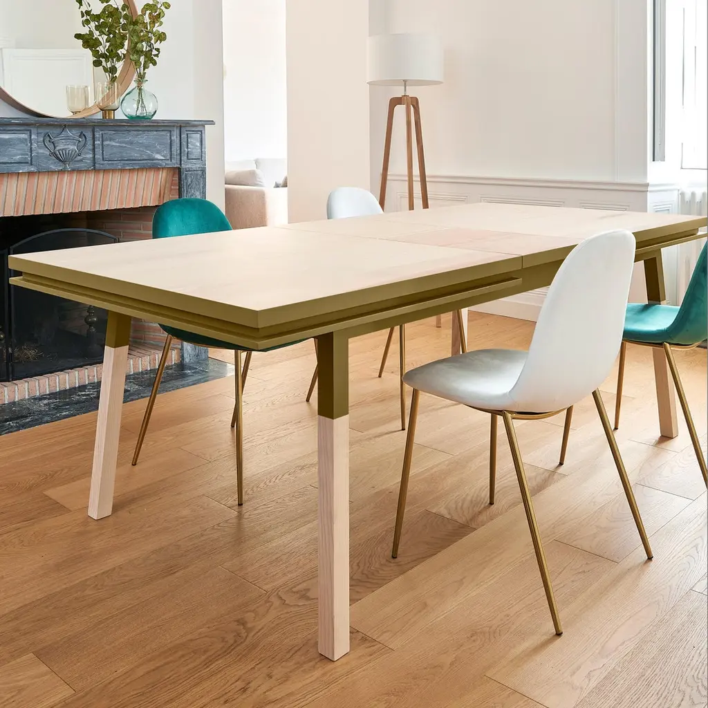 This rectangular dining table is proposed with 1 integrated and folded extension. It is made of 100% solid ash wood from sustainably managed and PEFC certified French forests.The 3 lengths are 140 cm / 55.1 in when the table is closed, 180 cm / 70.9 in with 1 leafThe extension is also in solid wood and 40 cm / 15.7'' widethe width is 80 cm / 31.5" and the height is 77 cm / 30.3"Unfold the extensions from the middle of the top by releasing first the brakes under the skirt and pulling one part of the tray aside. The other part is moving accordingly and synchroneously. Weight 40 to 90 kg depending on the size and number of extensionsThis piece of furniture is part of the ÉGÉE collection designed by the famous French Parisian designer Eric Gizard, that combines the sleek and refined codes of Scandinavian design with natural materials and colorful lacquers in an unique « short pants » finish.Mon Petit Meuble Français provides exclusively 100% Made in France furniture.The manufacture and finishes are of very high quality, carried out by French craft workshops in the Loire Valley.