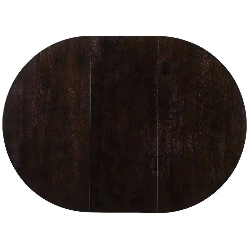 Taking into account the use of different scenarios, the table adopts a flexible design and the length can be adjusted. The round table's planked top is eased along the edges, then insert a leaf, and it can extend to accommodate additional guests. Table expands from 42'' to 58'', seats up to 6.