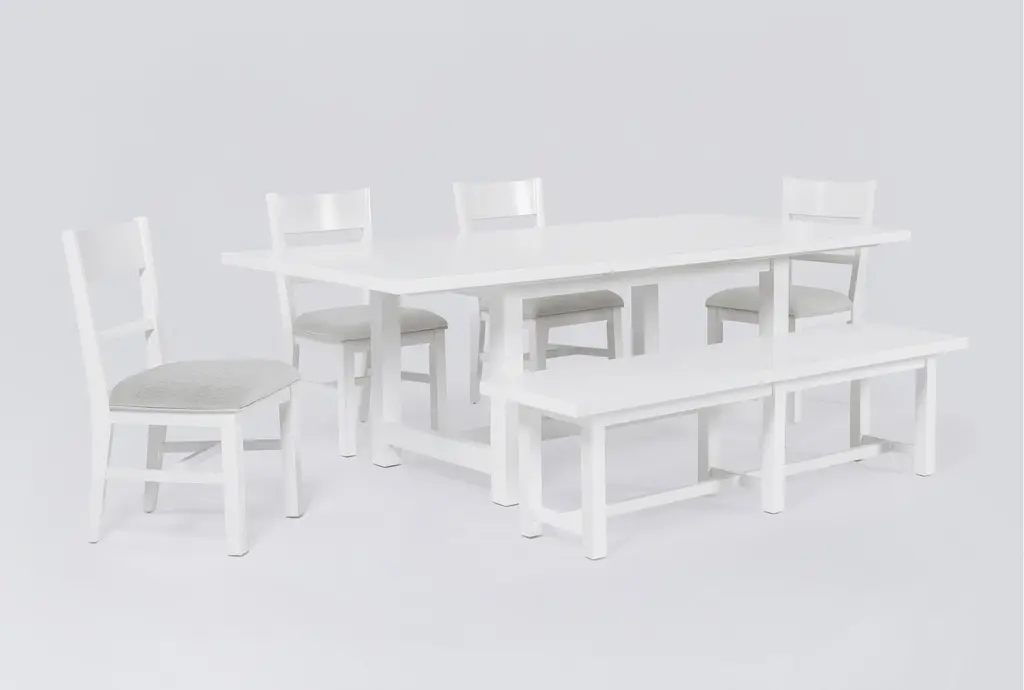 Felipe White 72-90" Extendable Dining Table With Bench Set For 6
