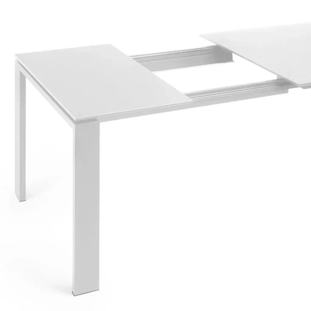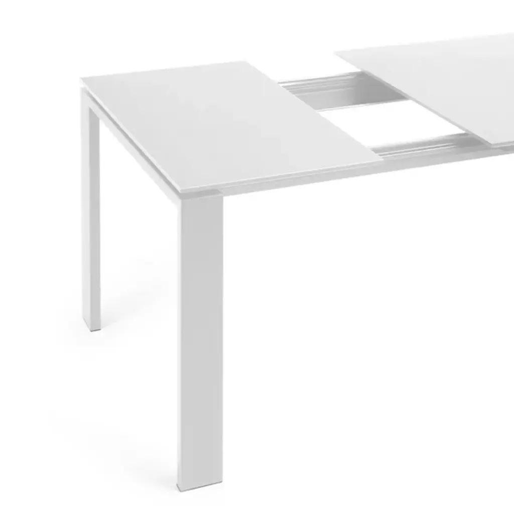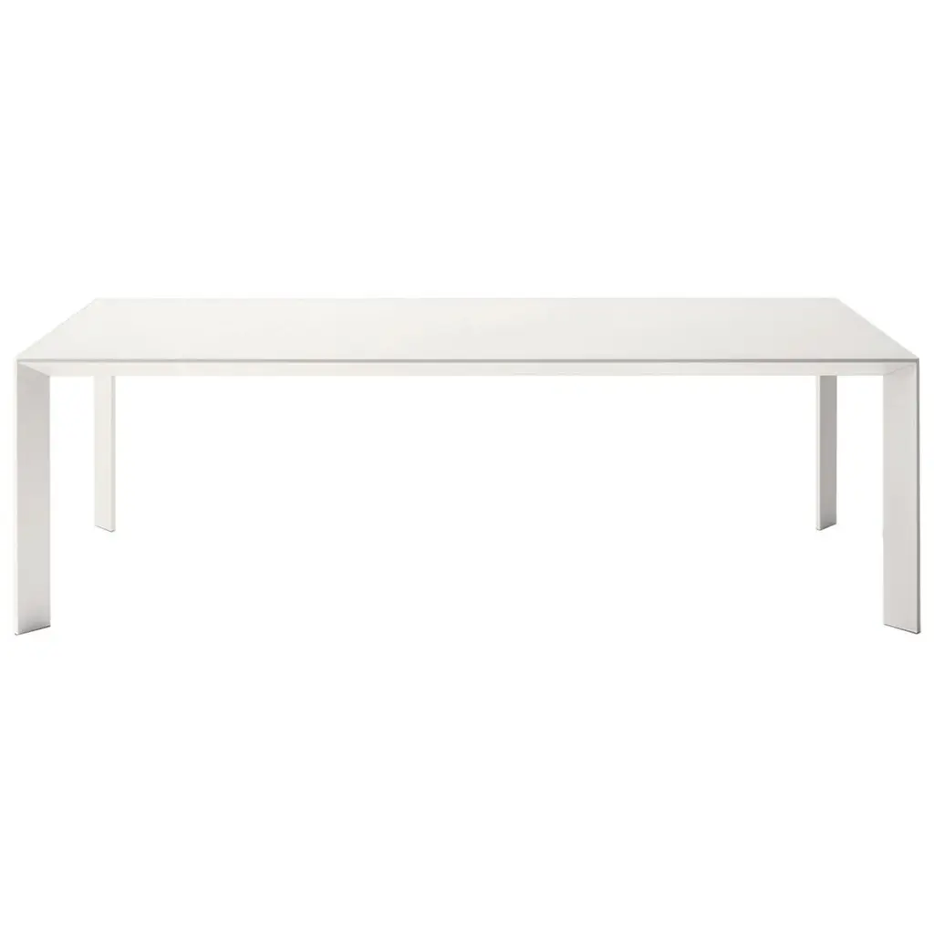The Four Extendable Dining Table from Kartell adapts to changing spatial needs through its innovative extension system. Ferruccio Laviani's design pairs painted steel legs with a scratch-resistant soft-touch laminate top, ensuring durability. The table expands smoothly to accommodate additional guests or contracts for daily use. Its practical engineering doesn't compromise the clean lines and geometric clarity that define the Four collection. This table responds intuitively to different gathering sizes, from intimate dinners to larger social events.