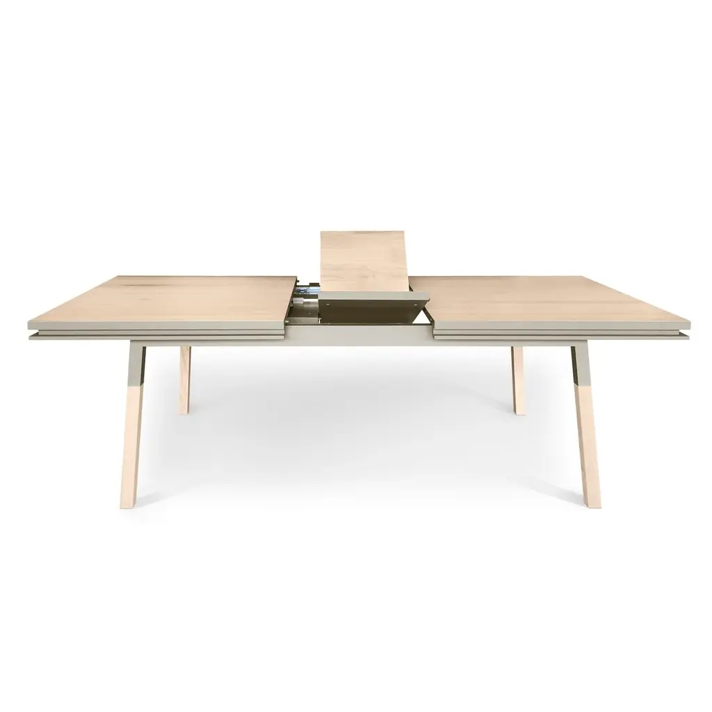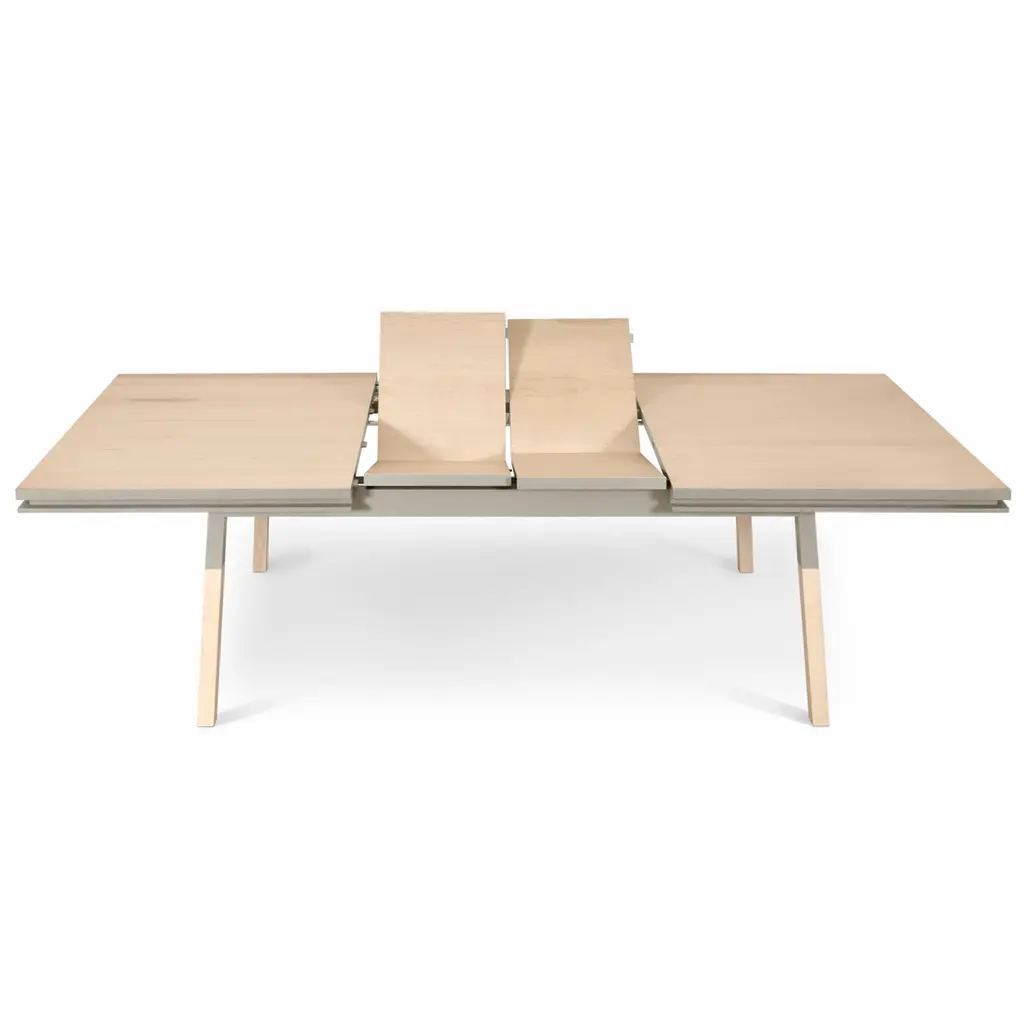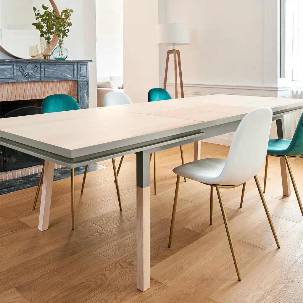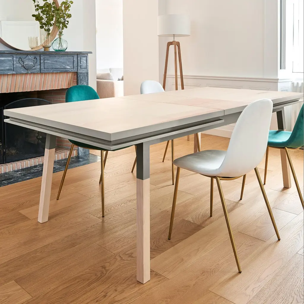 Rectangular dining table designed by Eric Gizard - Paris, France. This table is part of the ÉGÉE collection, that combines the sleek and refined codes of Scandinavian design with natural materials and "trendy" colorful lacquers in an unique « short pants » finish.Lengths : 180 cm / 70.9'' closed and 260 cm / 102.4'' with the 2 unfolded extensions - each leaf is 40 cm / 15.7'' and also in solid leaf.Width: 100 cm / 39.4'' Height: 76 cm / 29;9''Weight : 72 kg This table is also available with only 1 leaf or without any leaf. The presented Colour is Gris Muscade / Nutmeg GreyThe table opens in releasing the brakes under the belt and then pulling one part of the tray aside. The other part is moving accordingly and synchroneously. 100% of our wooden parts come from French sustainably managed forests.Mon Petit Meuble Français provides you exclusively with 100% Made in France Furniture.The manufacture and finishes are of very high-end quality, carried out in French craft workshops, in the west countryside of France: Loire Valley and Bretagne.