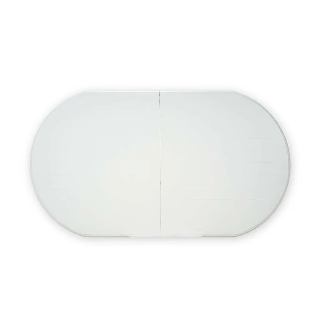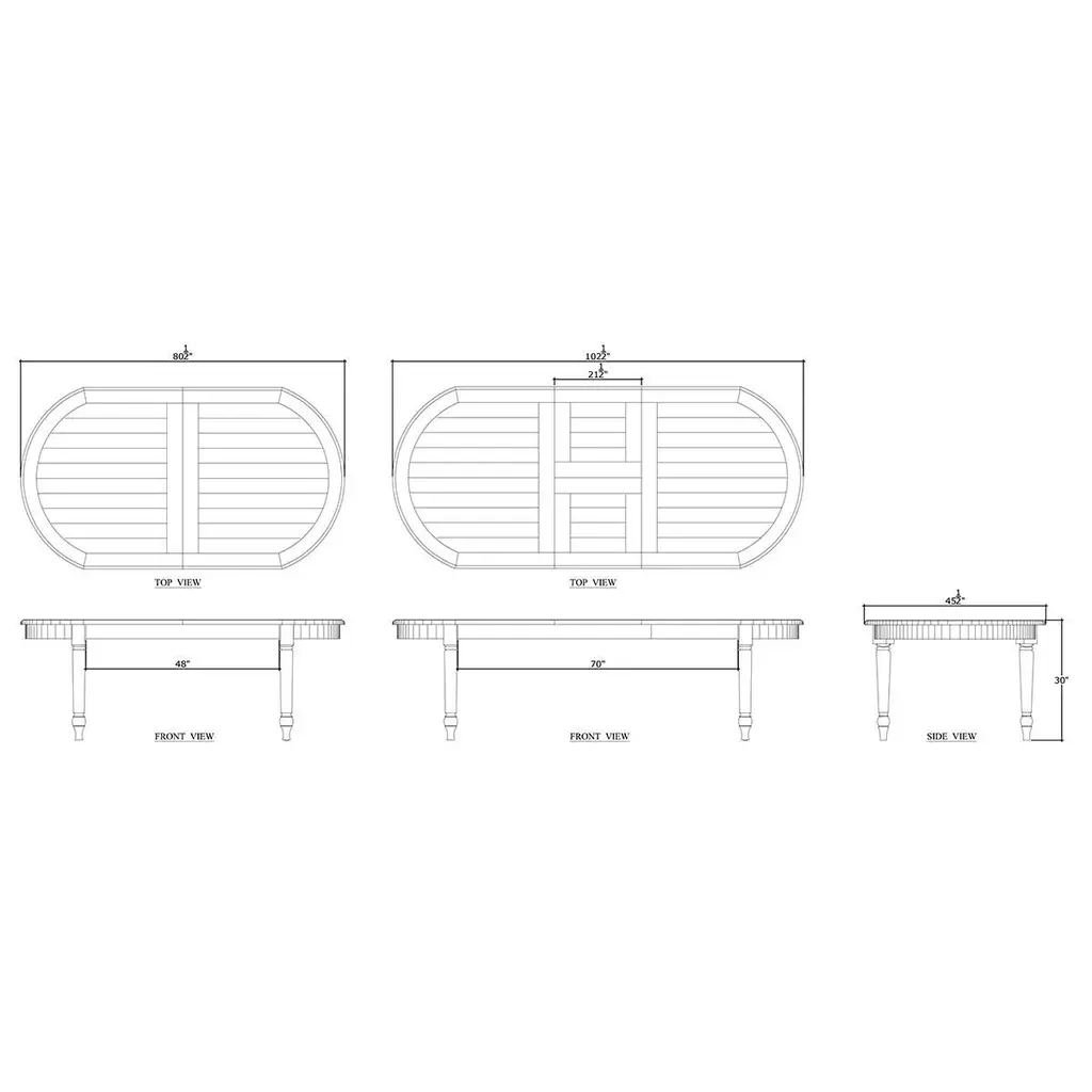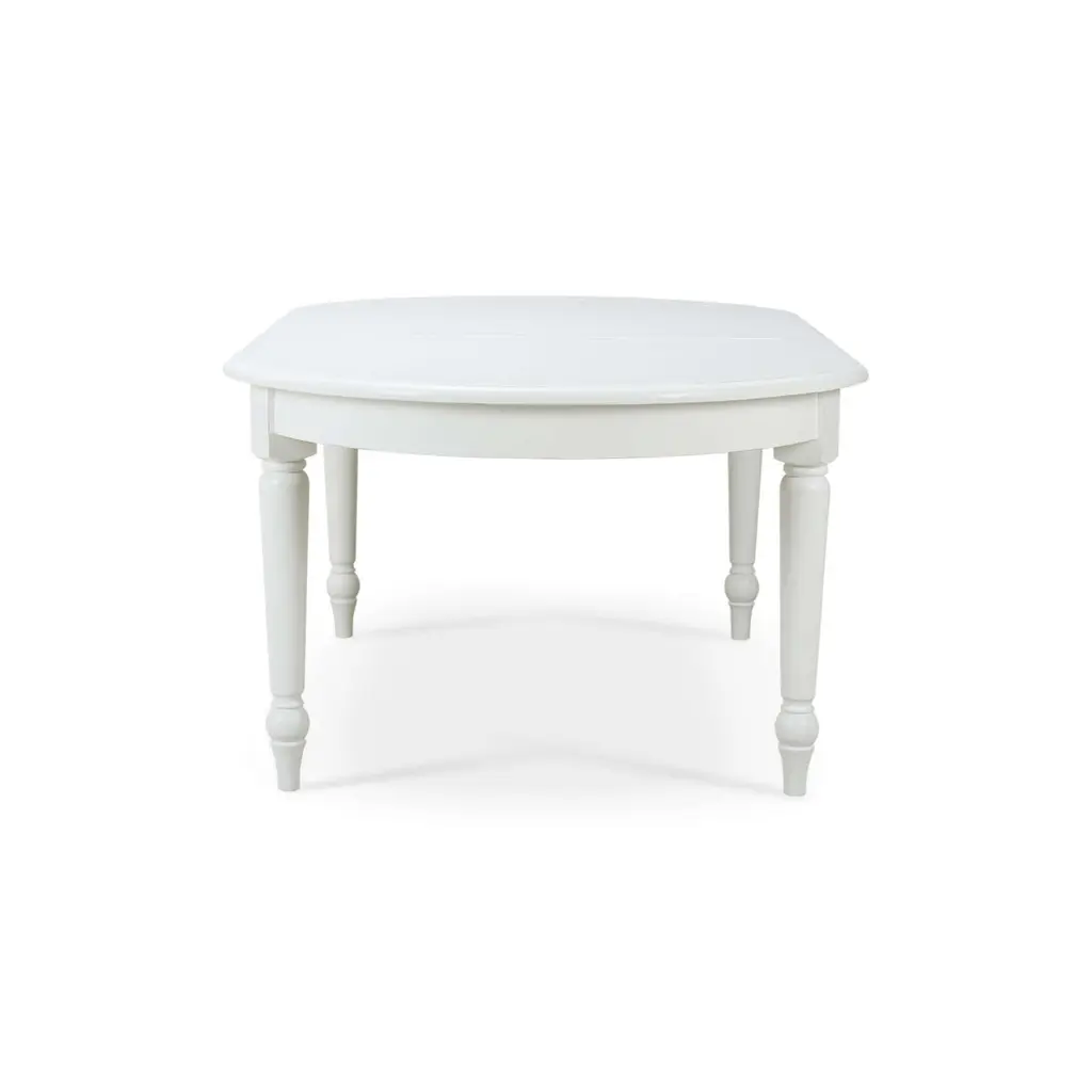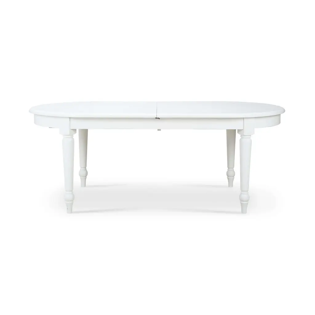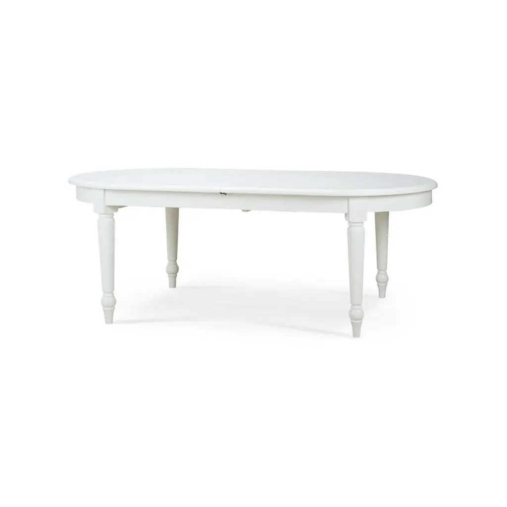 This beautiful Neo Classic table is designed to be the focal point of your dining room, offering both sophistication and practicality.The oval top, framed with breadboard ends, extends to 103", providing ample space for large gatherings. It features a simple molded top edge and is raised on turned and tapered legs, ensuring both elegance and stability.Open Dimensions: 103" W x 45" D x 30" HClosed Dimensions: 82" W x 45" D x 30" H