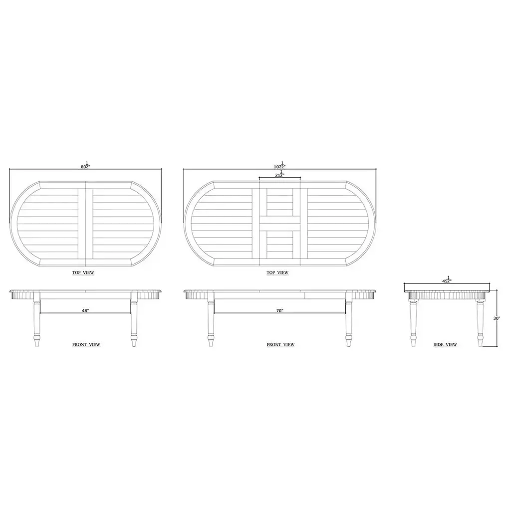 This beautiful Neo Classic table is designed to be the focal point of your dining room, offering both sophistication and practicality. The oval top, framed with breadboard ends, extends to 103", providing ample space for large gatherings. It features a simple molded top edge and is raised on turned and tapered legs, ensuring both elegance and stability. Open Dimensions: 103" W x 45" D x 30" H Closed Dimensions: 82" W x 45" D x 30" H