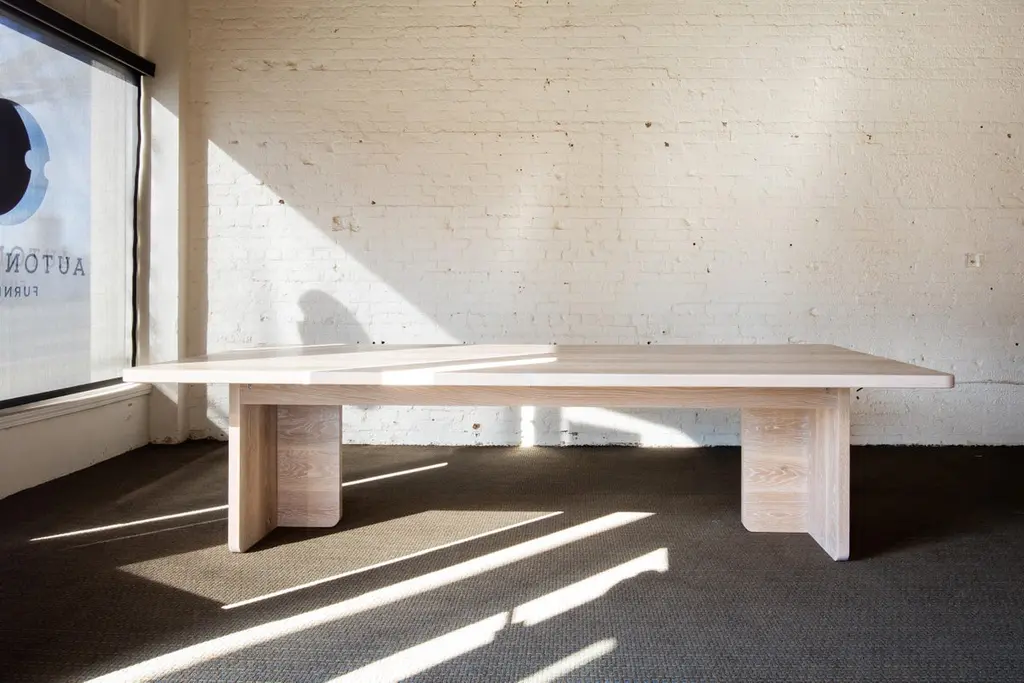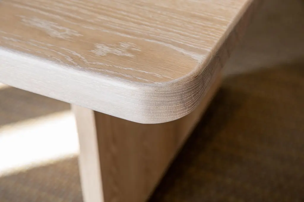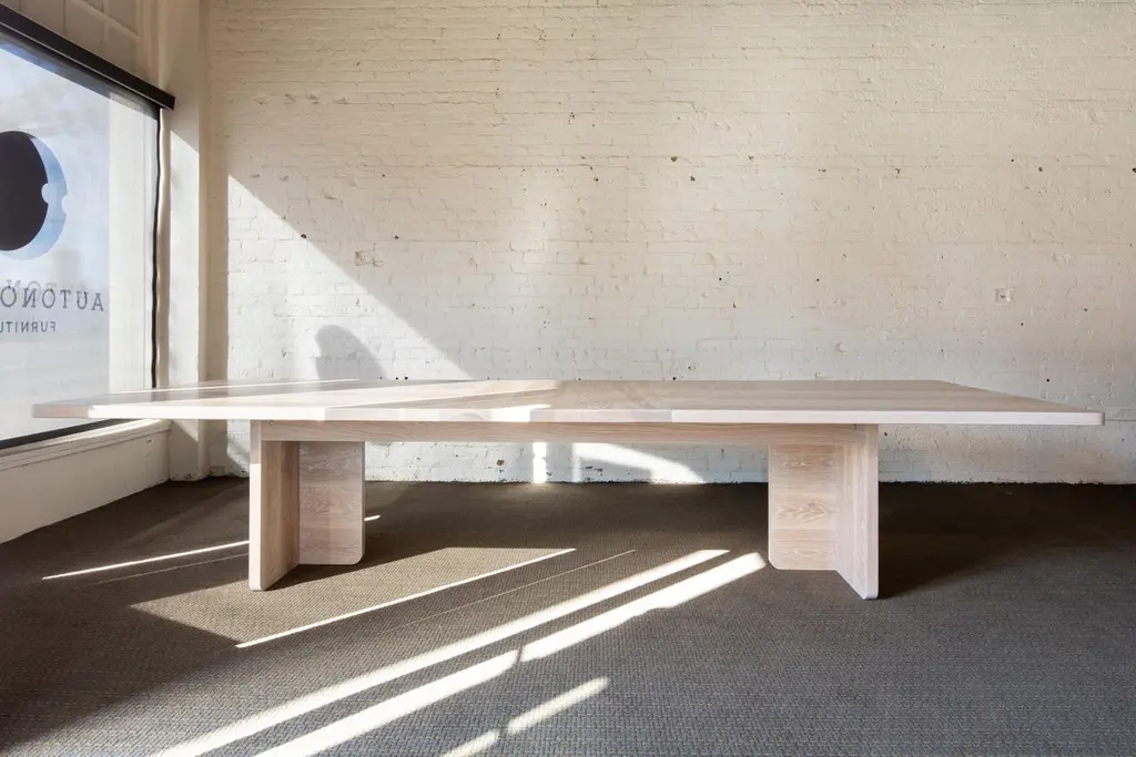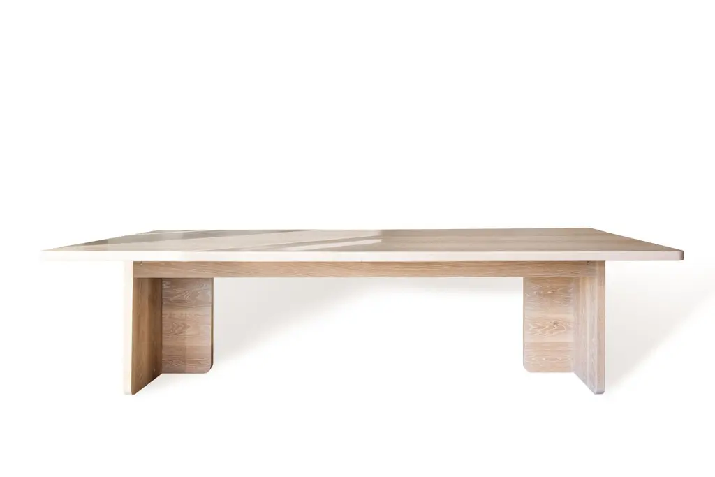 The Georgia Extendable table in White Oak, with rounded corners for a softer look with a removeable table leaf for large or intimate gatherings. Allowing for maximum chair clearance, if you're looking to maximize seating, this is the table. Sporting rounded edges and a stunning view of end grain on the legs at the perpendicular connection. The Georgia Extendable table is constructed in solid 2" thick White Oak, with a removeable table leaf with the grain running perpendicular to the tabletop, and finished in a all natural hard wax oil. The Georgia Extendable table is intended for easy living and maintenance, many family meals (large or intimate), and a work of art to last a lifetime. Equally suited as a boardroom table in a contemporary office environment.- 144" L x 48" W x 29" H (120" when extension leaf removed). Tailored sizing available.- White Oak with oil and wax finish. Other wood species such as Black Walnut and Ash are also available.- Designed by Kirk Van Ludwig, award-winning Designer of the Year finalist for Western Living magazine. A modern furniture aficionado.