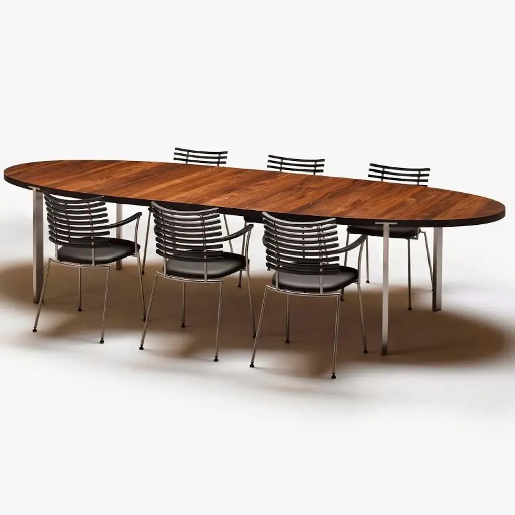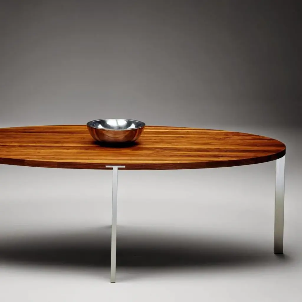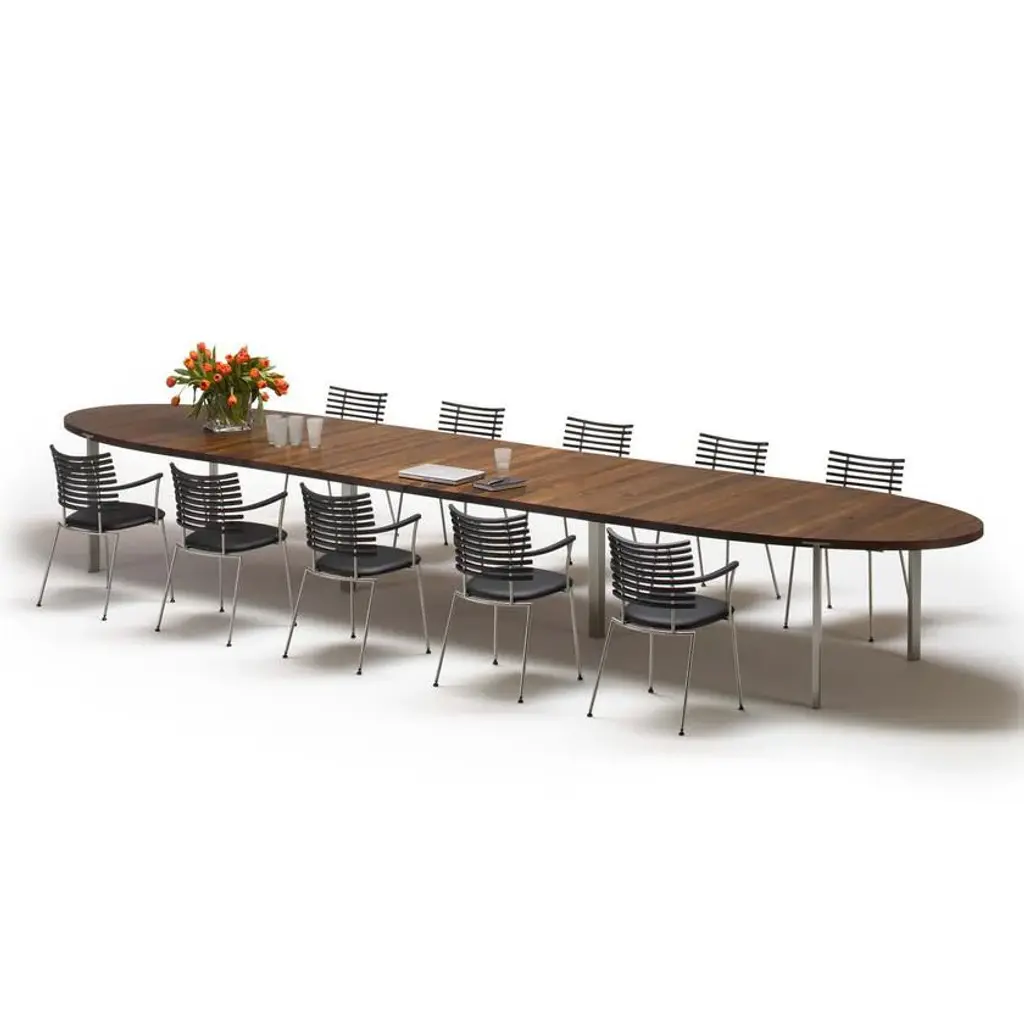 Oval table with extension possibility. The table is made in two sizes. The table can be extended with up to 8 extension leaves. As standard the table is prepared for maximum 2 extension leaves. The table top is available in solid wood.