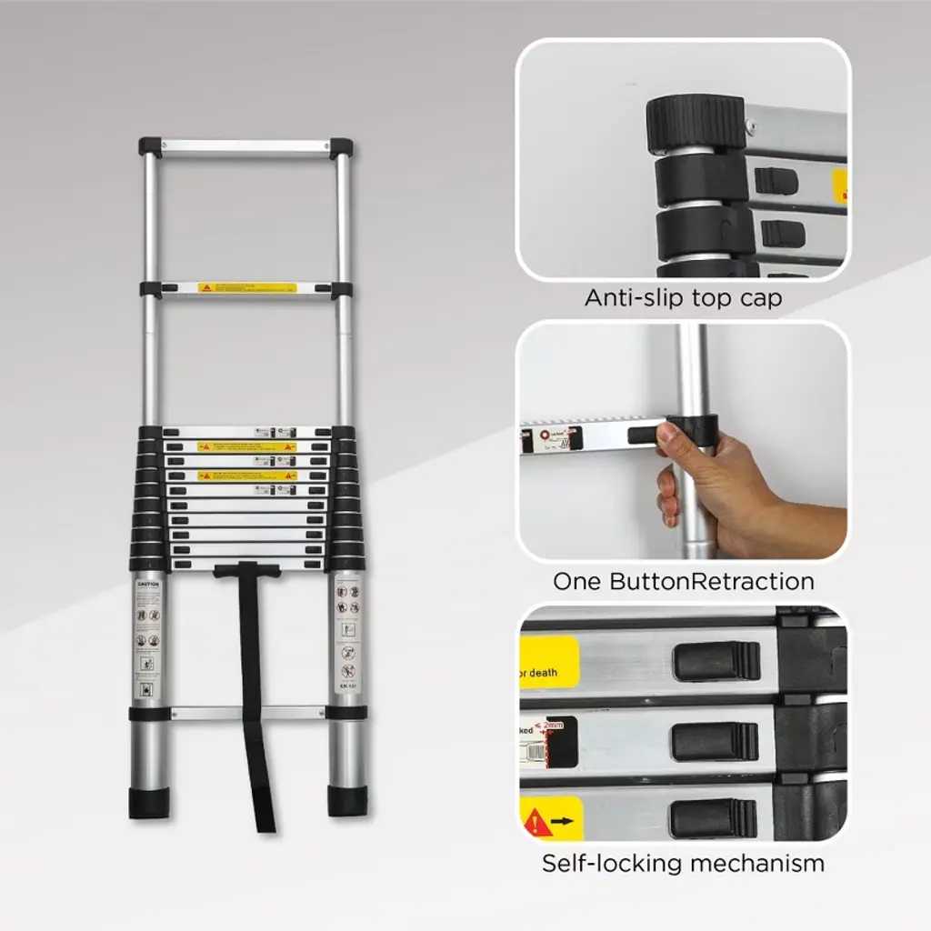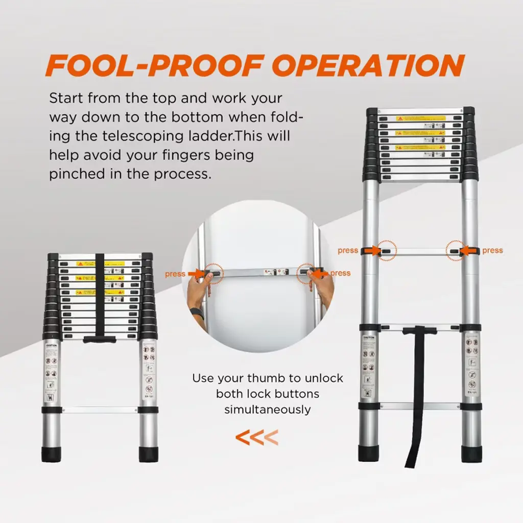 The Gulches Telescoping Ladder 16.5FT is the perfect blend of versatility and strength, designed for both indoor and outdoor work. Made from durable aluminum alloy, this extension ladder is lightweight yet heavy-duty, supporting up to 300 lbs. Its foldable design allows for easy transport and storage, making it ideal for various tasks, from home maintenance to professional projects. The telescoping feature provides adjustable height, ensuring you can reach those hard-to-access areas safely. With non-slip feet for added stability, the Gulches Telescoping Ladder is your go-to solution for all your lifting needs, combining convenience and safety in one reliable product.