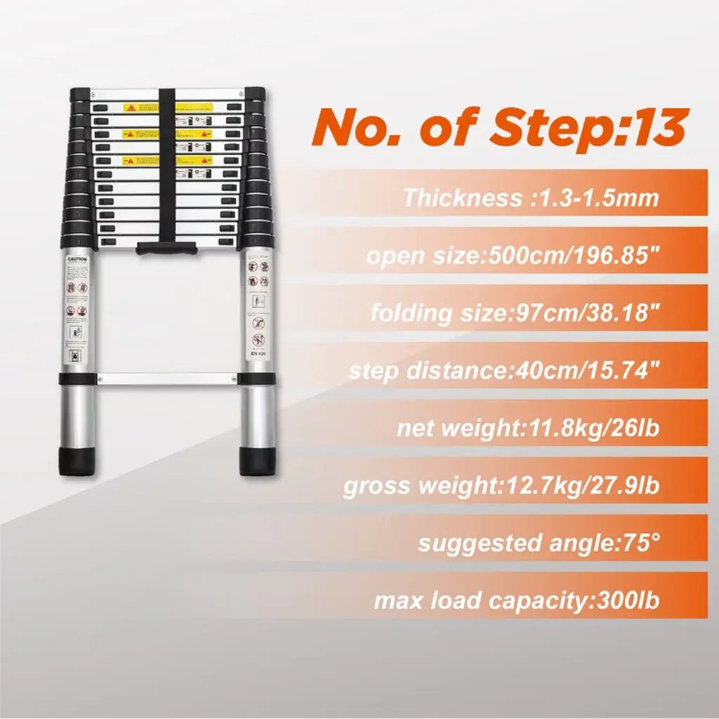 Gulches Telescoping Ladder 16.5ft, Extension Ladder, Aluminum Alloy Folding Ladder Portable Multi-purpose For Indoor Outdoor Work, Heavy Duty 300 Lbs