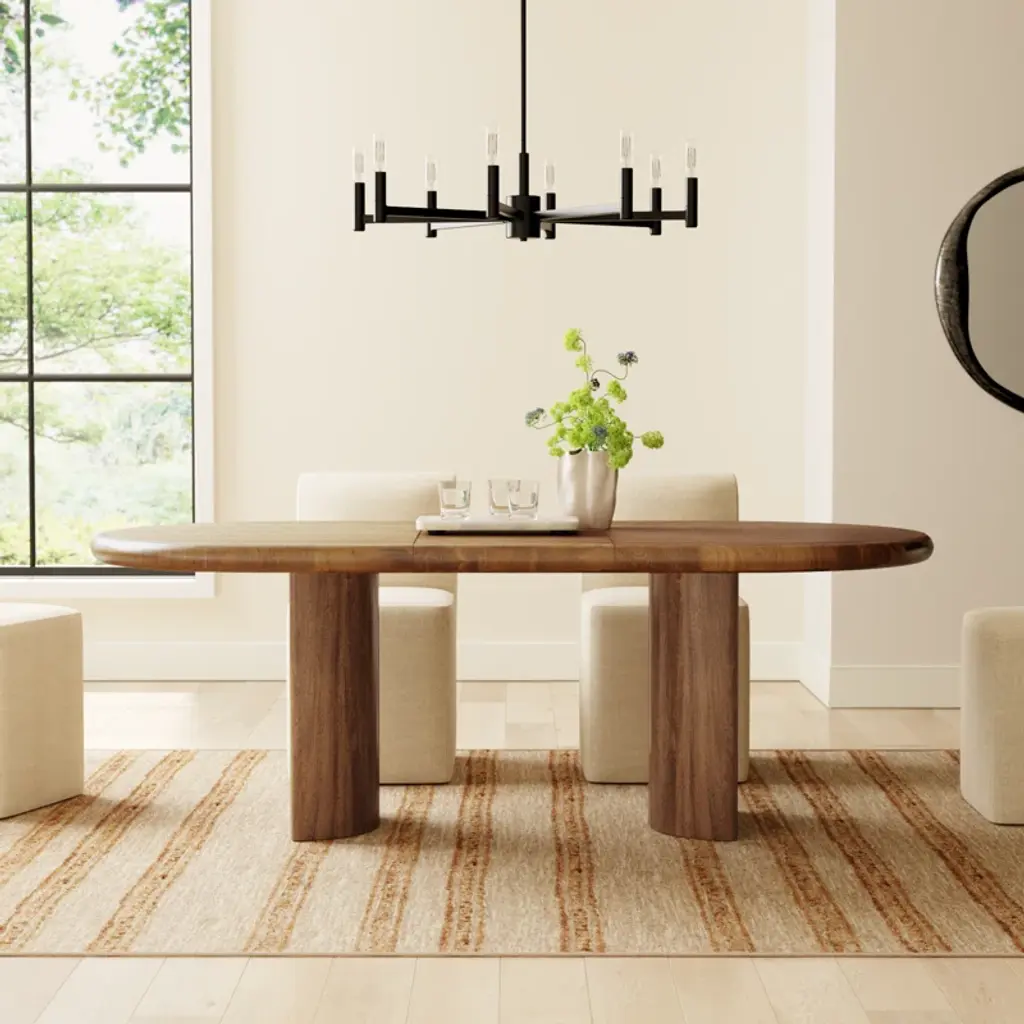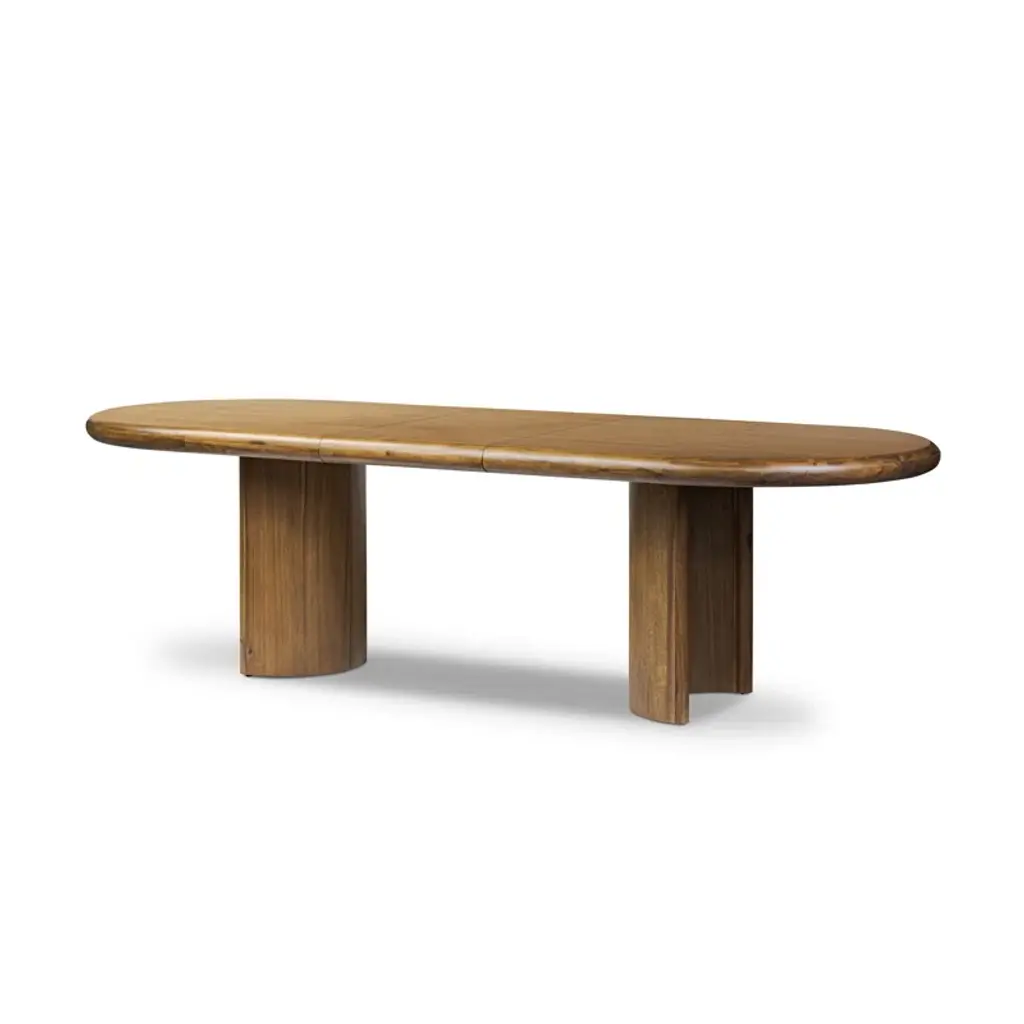 A smooth, shapely oval table is prime for gatherings big or small, easily extending from 84" to 104". A versatile design that works into a range of spaces and styles, offering a timeless look that works into your collection with ease.