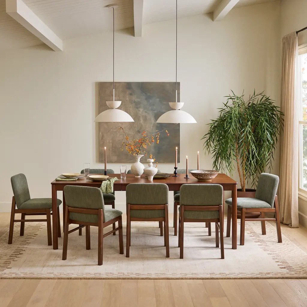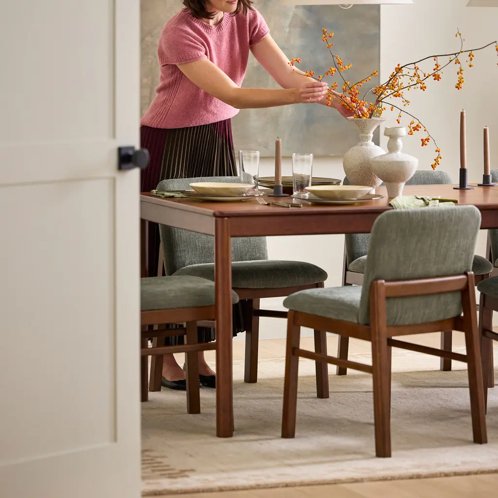 Keeping supper simple since mid-2025. The Heidi table is purposely unembellished to let its thoughtful details shine: a lip of solid-wood edging highlights the beautiful wood grain and visually separates the top and base of the table. A drop-in leaf emerges to accommodate unexpected guests, or to make more room for the fourth-grade poster art project. Next up on our quest to simplify… meal planning.