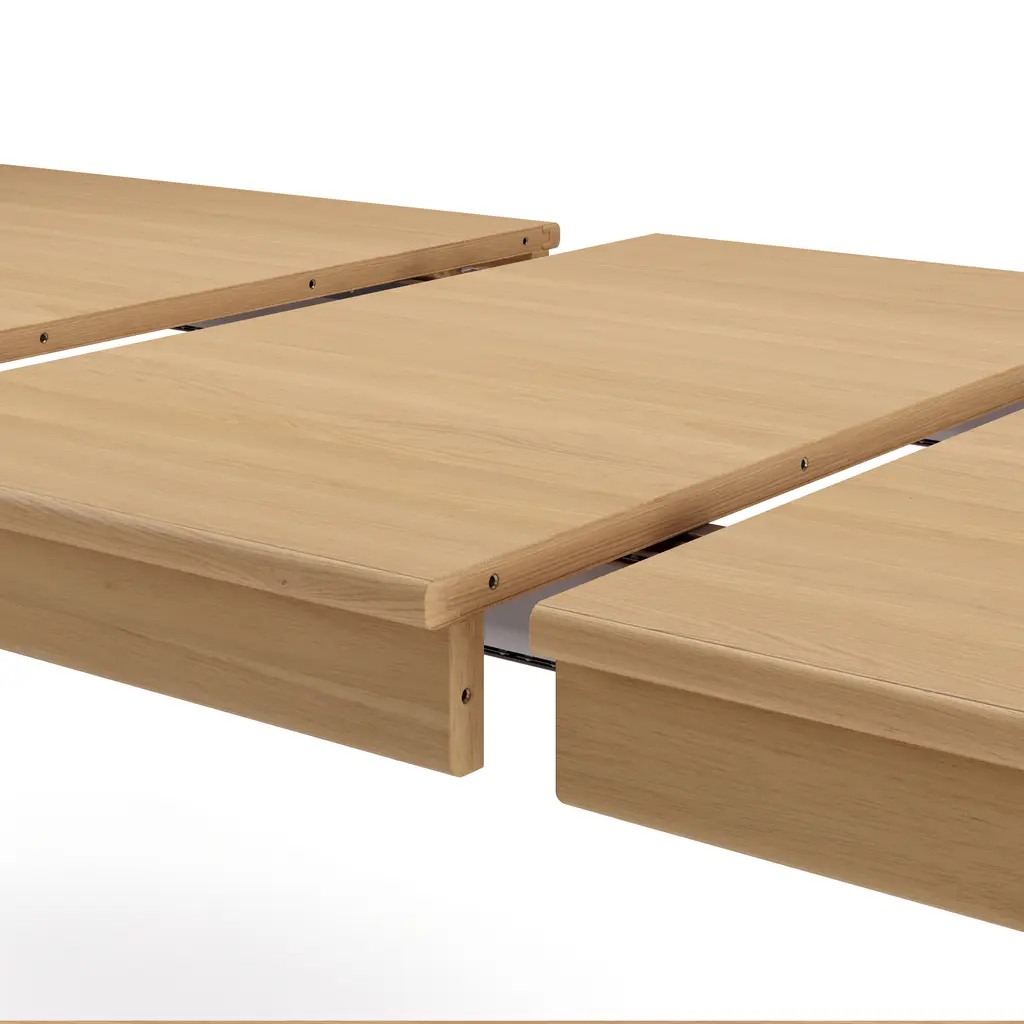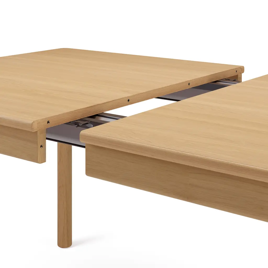 Keeping supper simple since mid-2025. The Heidi table is purposely unembellished to let its thoughtful details shine: a lip of solid-wood edging highlights the beautiful wood grain and visually separates the top and base of the table. A drop-in leaf emerges to accommodate unexpected guests, or to make more room for the fourth-grade poster art project. Next up on our quest to simplify… meal planning.