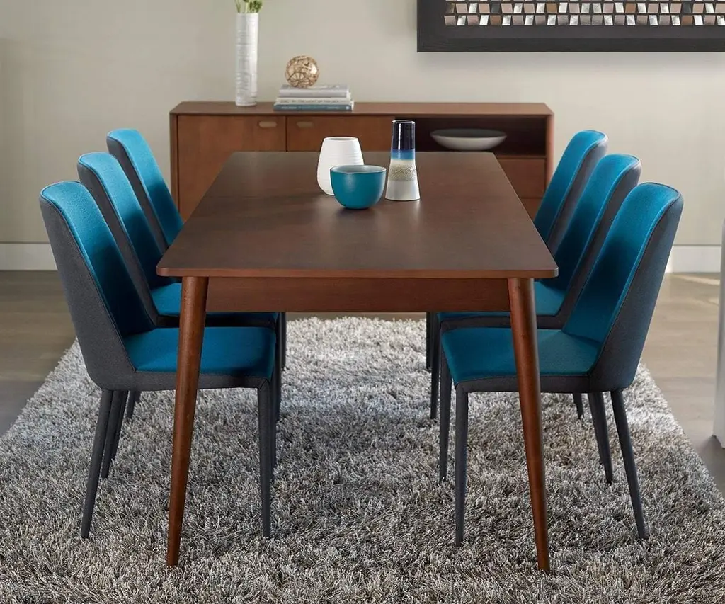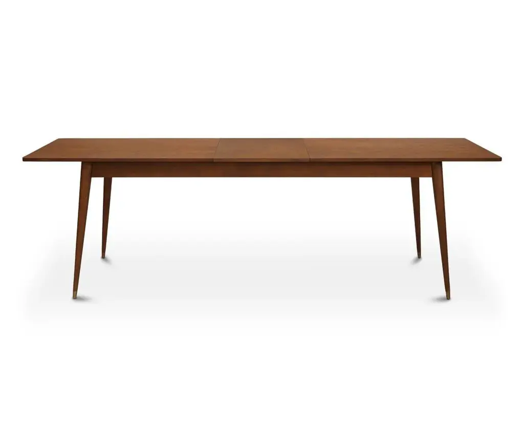 The Holfred Extension Table is a classic beauty. Enhance any dining area with the warm wood tones, smooth grain surface, clean lines, rounded corners and brass capped feet of this modern piece. Designed to extend in order to allow for more guests, it can transform your event from an intimate gathering to a formal affair.