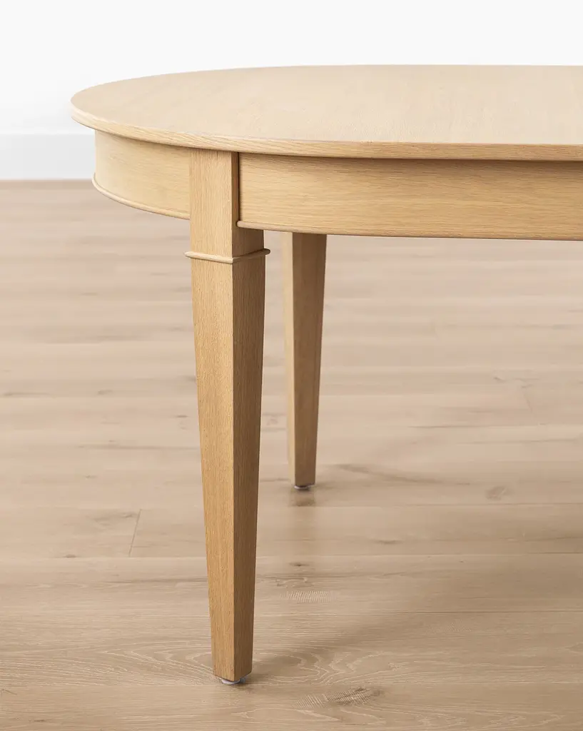 The Hughes Extension Dining Table pairs refined craftsmanship with everyday versatility. Its gracefully tapered legs and smooth silhouette bring timeless charm, while the extension leaf allows for effortless gatherings, whether intimate or grand.