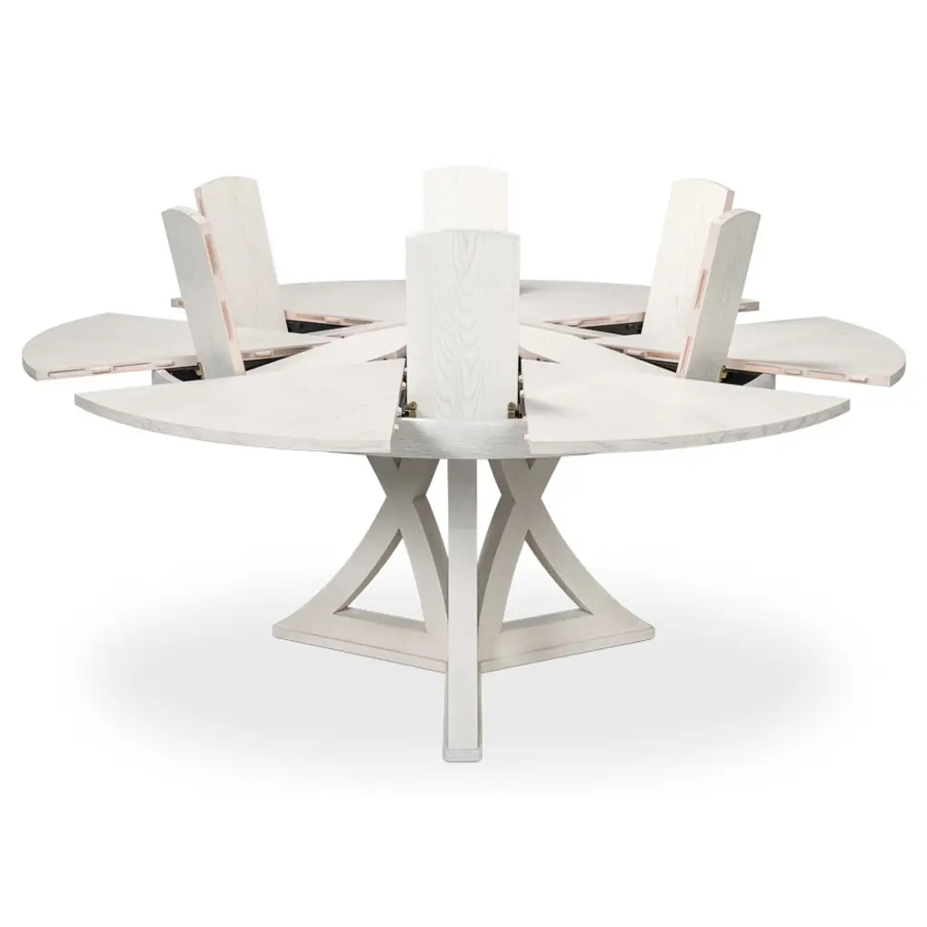 Isabella Traditional White Oak Round Extendable Jupe Dining Table - 66-85"