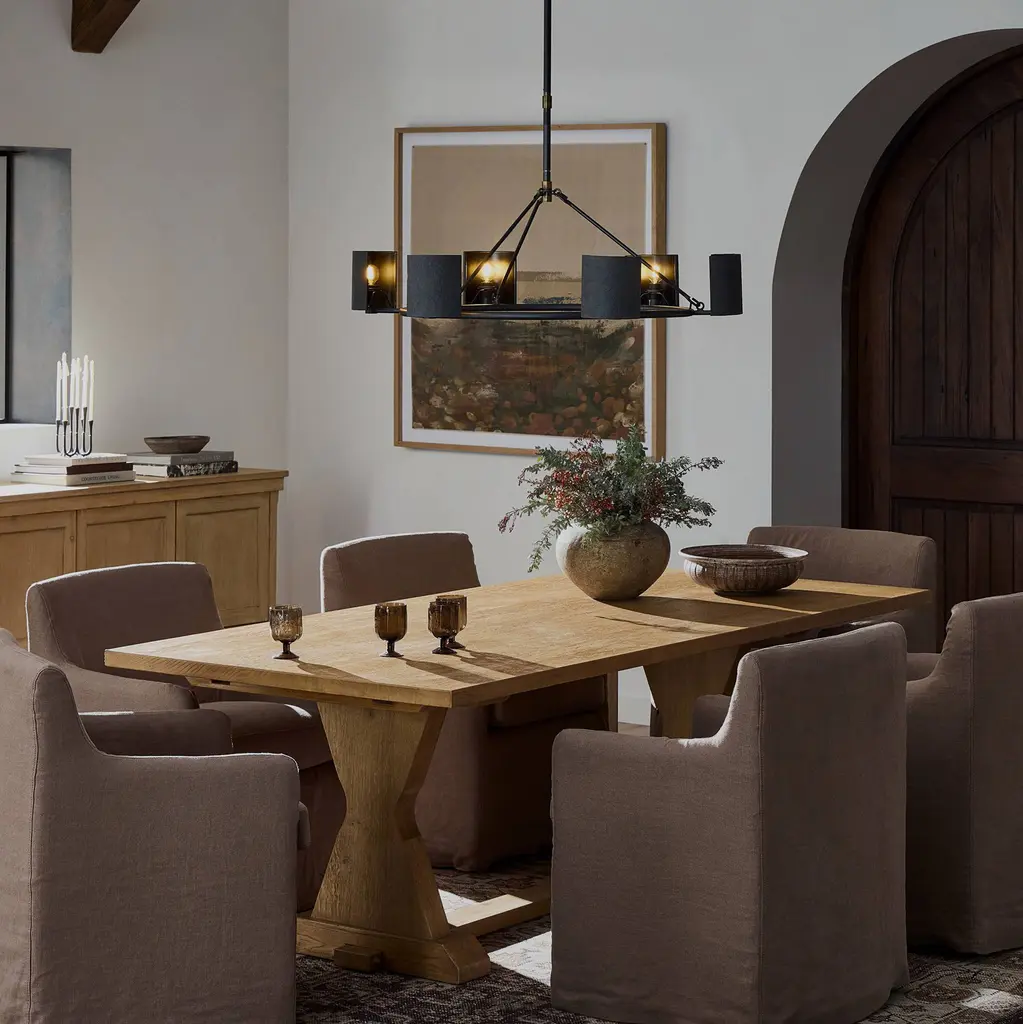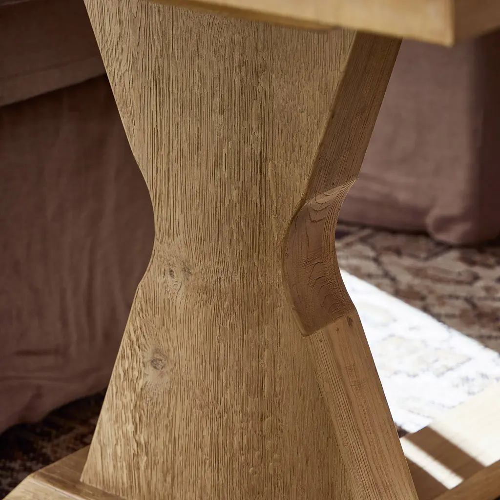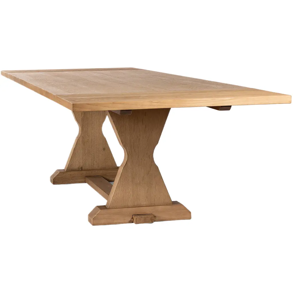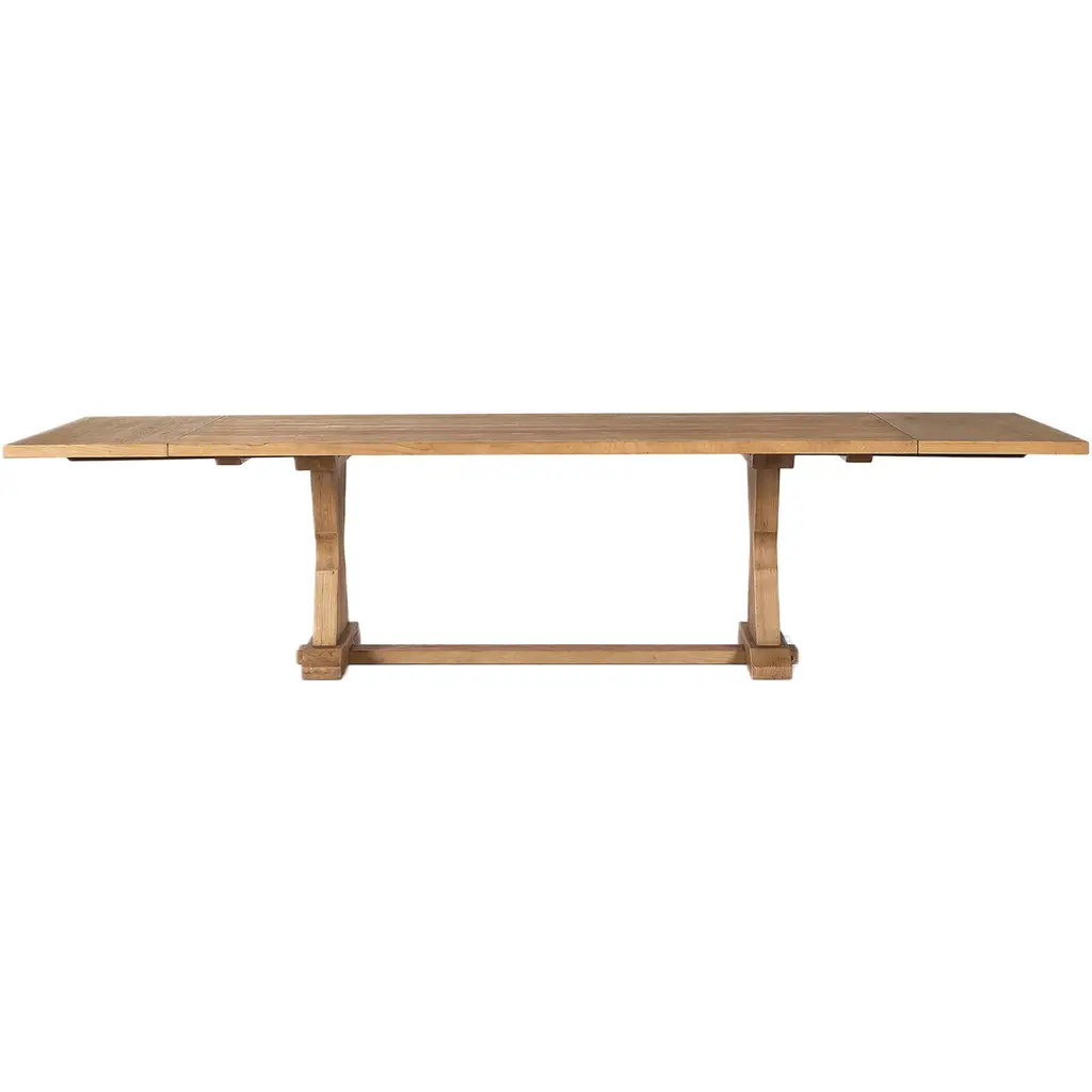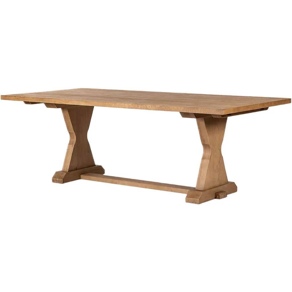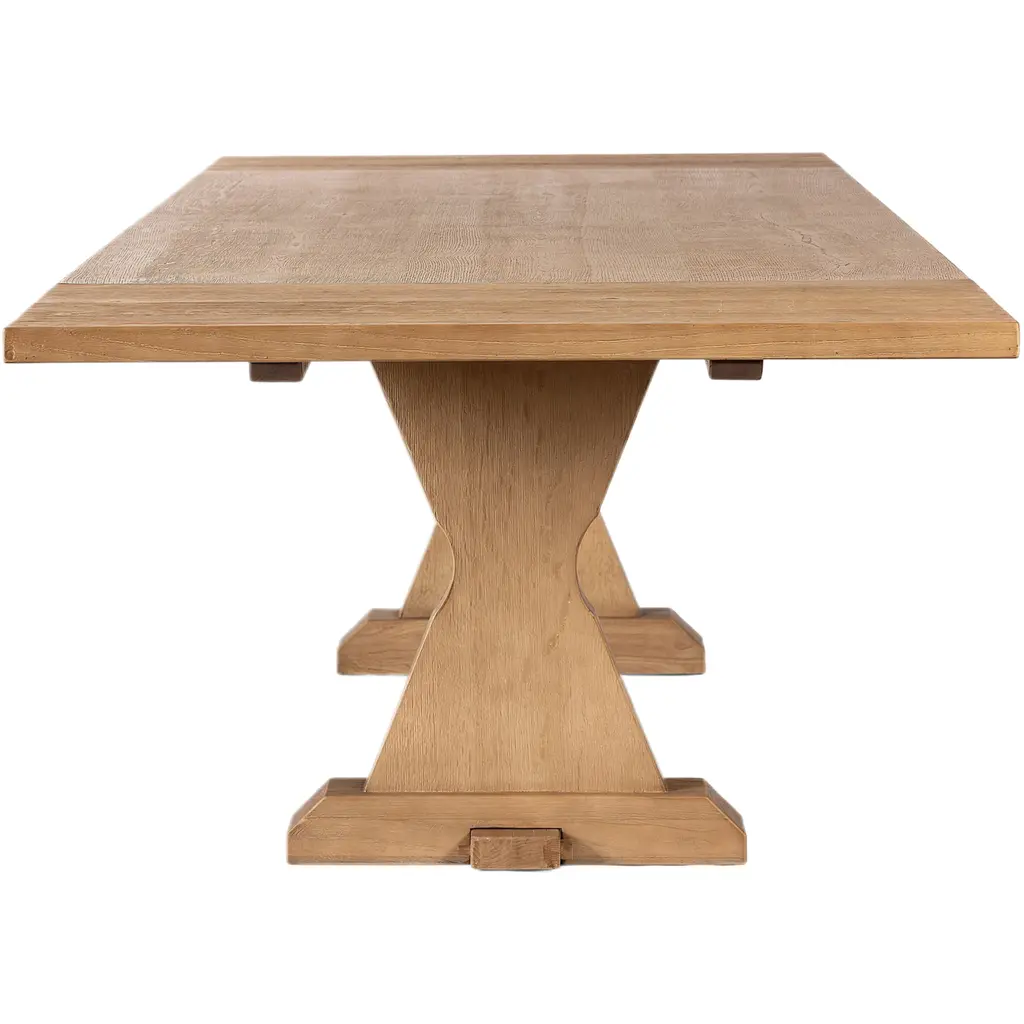 The Isalyn Extension Dining Table offers a modern twist on the classic trestle table design. Featuring a playful center cutout, it adds a geometric flair to its hourglass silhouette and traditional breadboard top. This table is perfect for family dinners or hosting celebrations, extending from 88 inches to a generous 128 inches, comfortably seating 8 when closed and up to 12 when fully expanded. Both functional and stylish, the Isalyn Extension Dining Table is ready to accommodate everything from weeknight meals to festive gatherings.