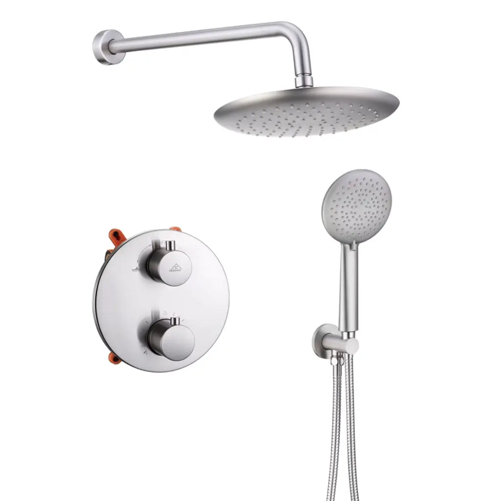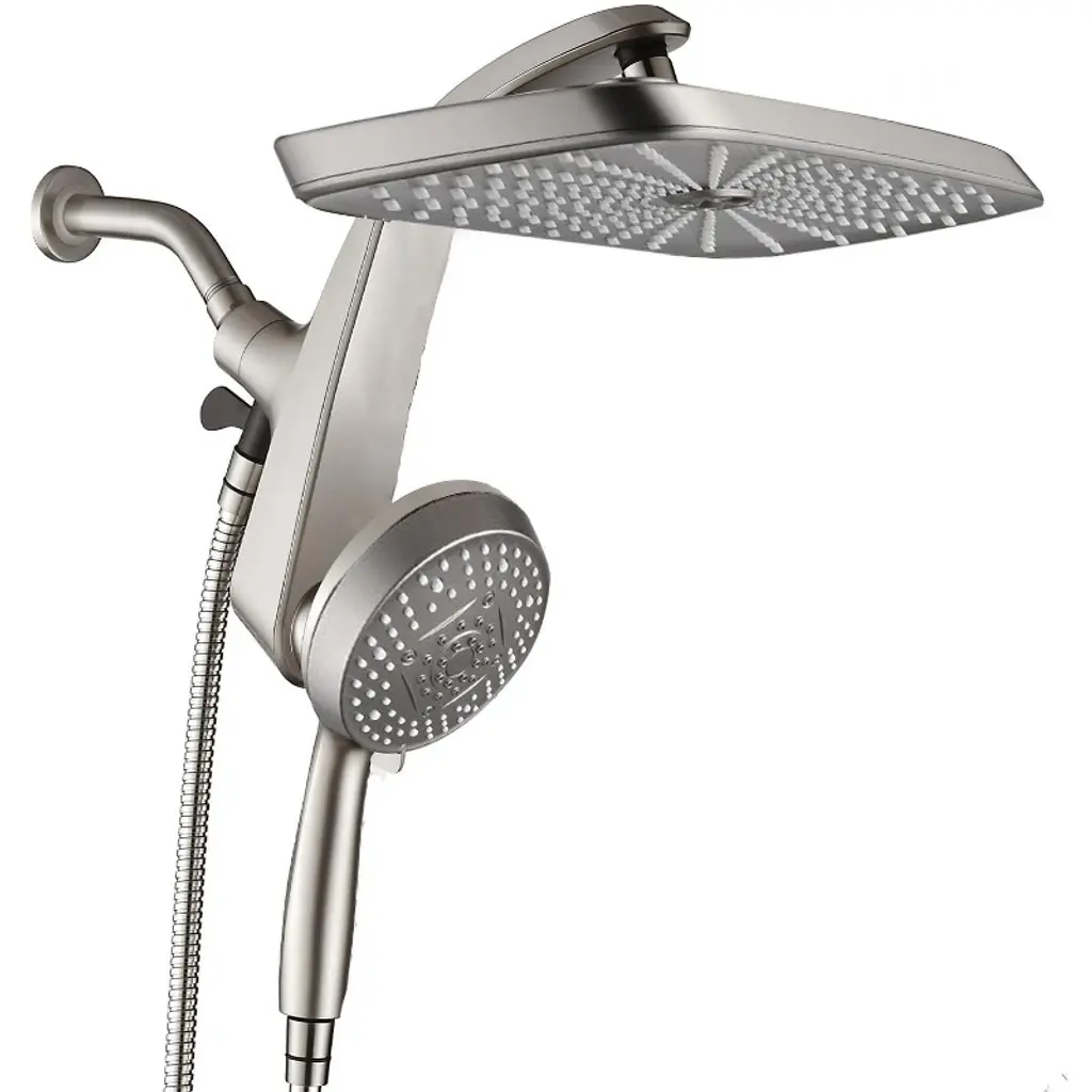 Upgrade your shower experience with this high - performance shower head combo. It combines a 10 - inch high - pressure rain showerhead with an adjustable extension arm and a 5 - setting handheld showerhead. The large square rain showerhead offers full - body coverage and has over 100 self - cleaning silicone nozzles for even spray and to prevent buildup. The 360 - degree rotatable joint ensures a leak - free connection. The handheld showerhead with 5 settings is perfect for various uses like baby showers and massages. The water regulator helps control water flow. The adjustable extension arm, made of solid brass, is durable and allows you to customize the shower angle. Installation is a breeze, no plumber needed. This combo is suitable for both adults and babies, bringing convenience and a great bathing experience to your daily life.