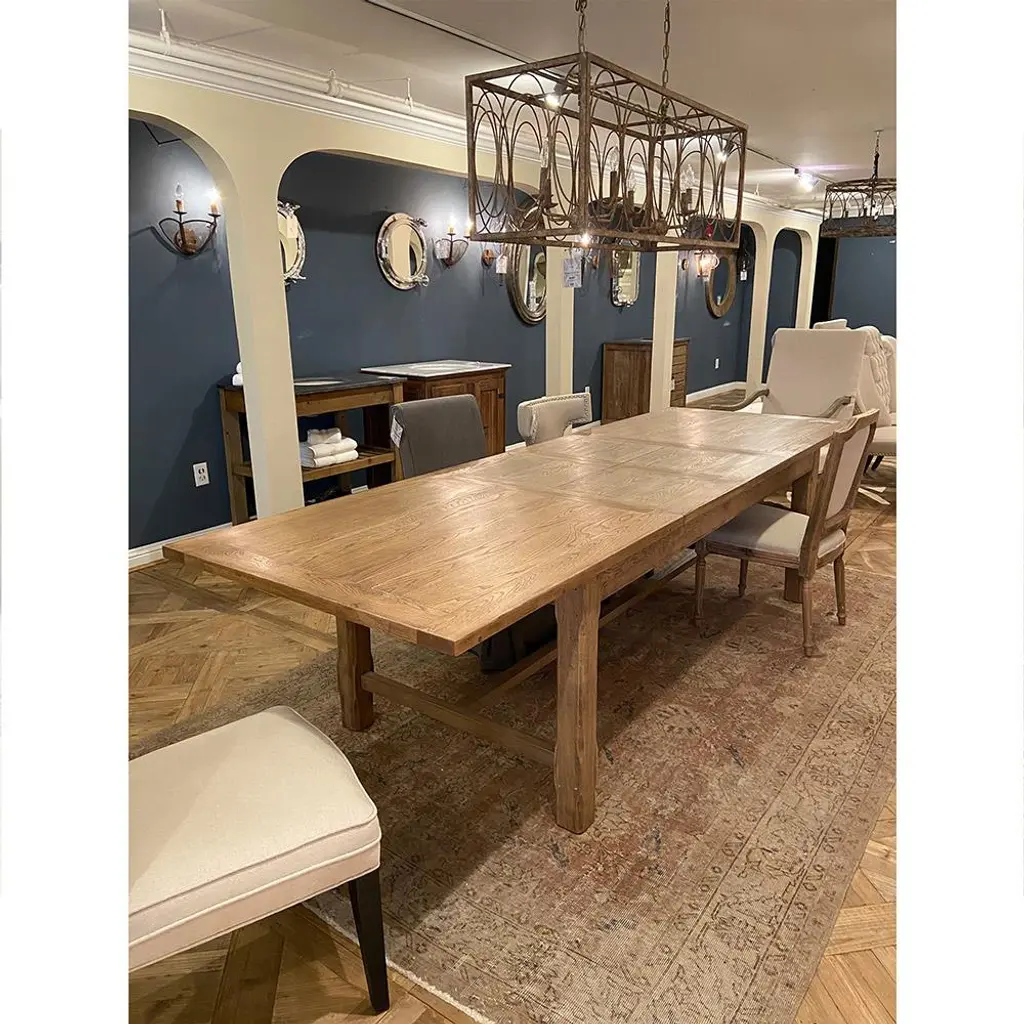 Ivan Rustic Natural Brown Oak Wood Extendable Dining Table - 82.75-122"w
