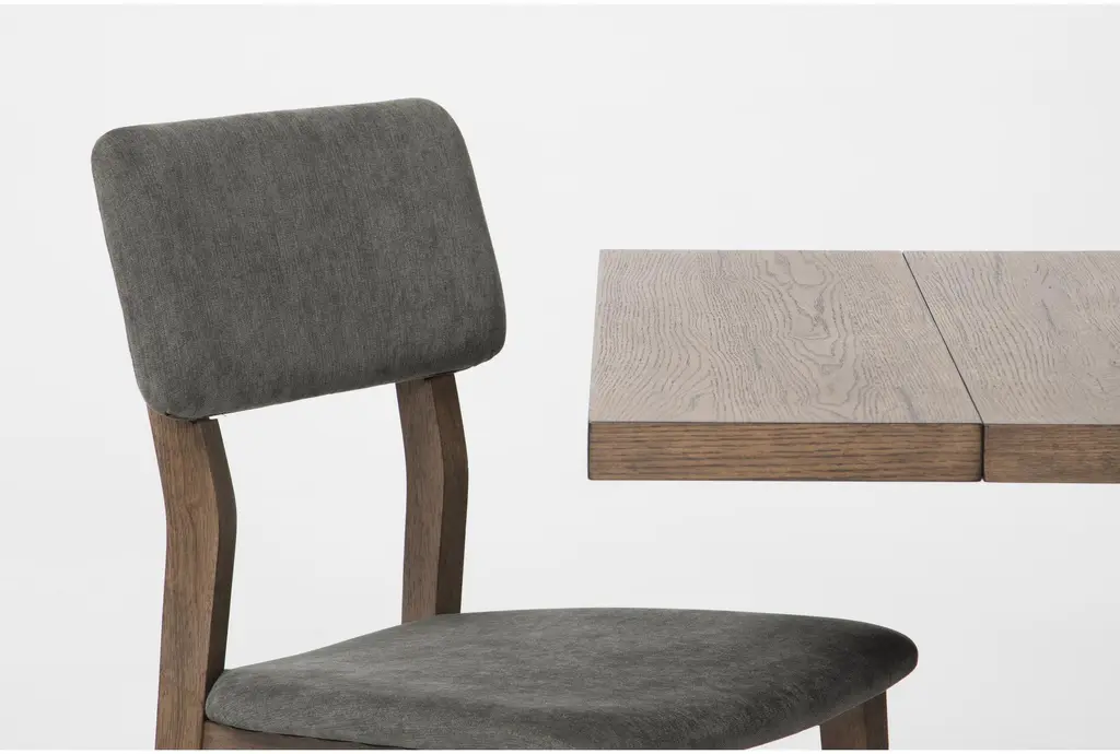 Introducing the Kai Brown Cracked Oak Extendable Dining Table Set with Bench and Sage Chairs, perfect for seating up to six people. This rustic dining set is designed to bring warmth and functionality to your dining room. The combination of brown wood and sage fabric chairs creates a harmonious and inviting atmosphere for family meals and gatherings.