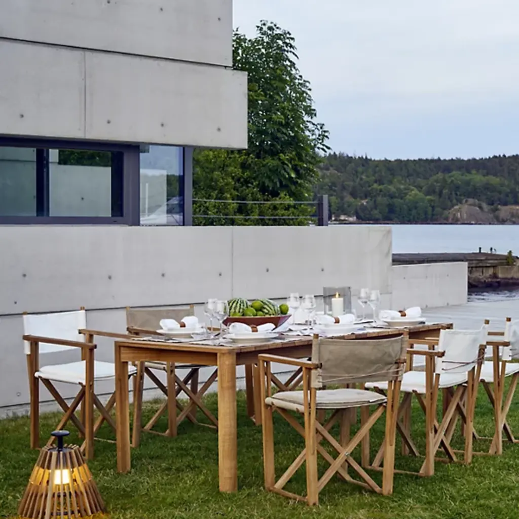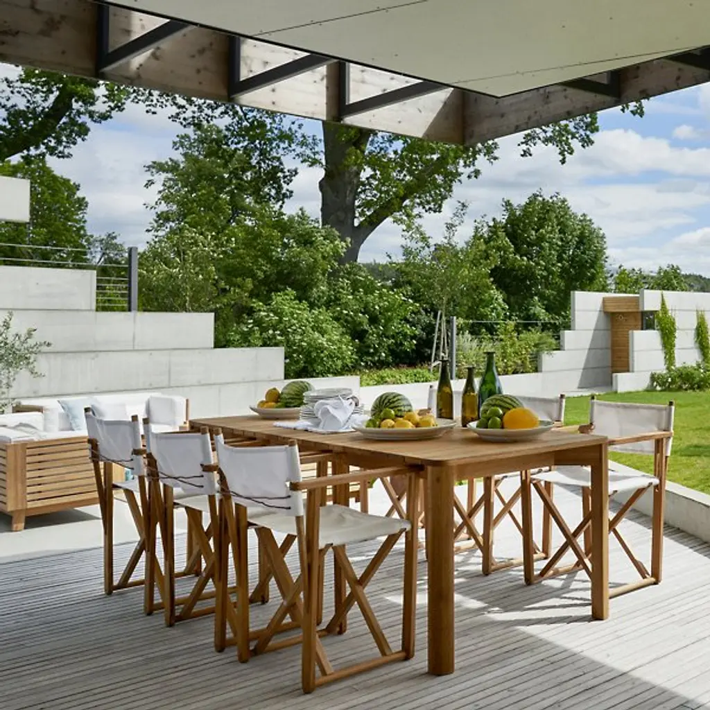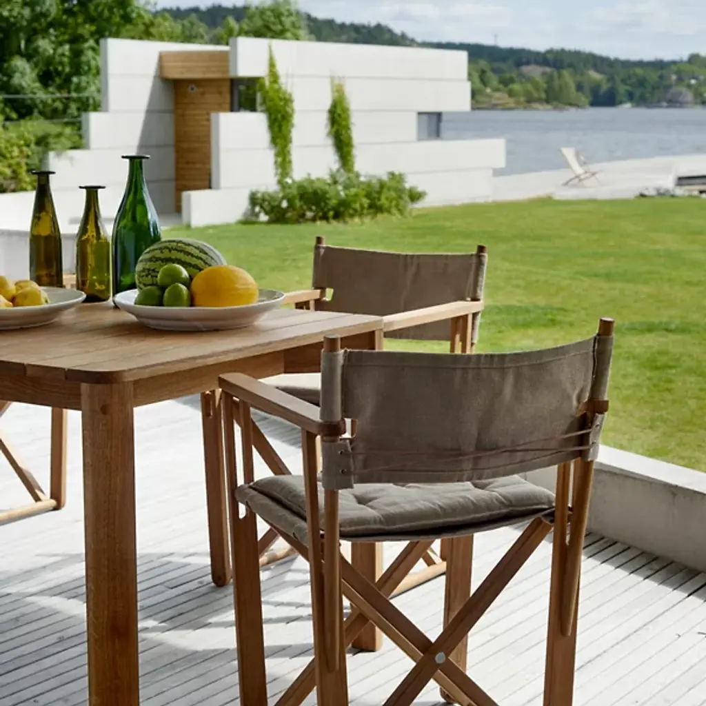 The Korso Outdoor Tabletop Extension, Set of 2 from Skargaarden integrates and extends the Korso Dining Table, enhancing its functionality. Designed by Martin dos Santos and crafted from the same slatted wood as the table, these extensions epitomize contemporary Scandinavian style, offering versatility and elegance to outdoor dining spaces. Their sleek design and quality construction provide a stylish solution for accommodating extra guests while maintaining the table's inspired aesthetic.