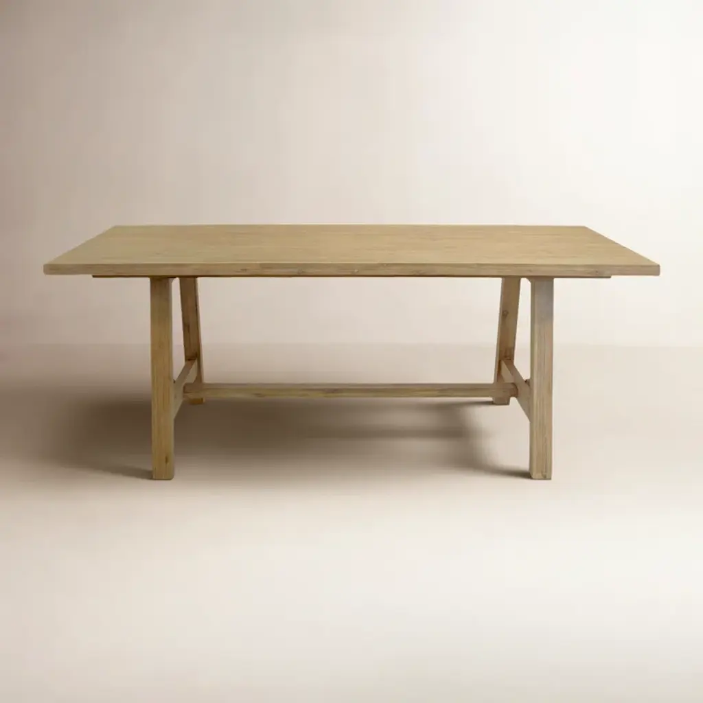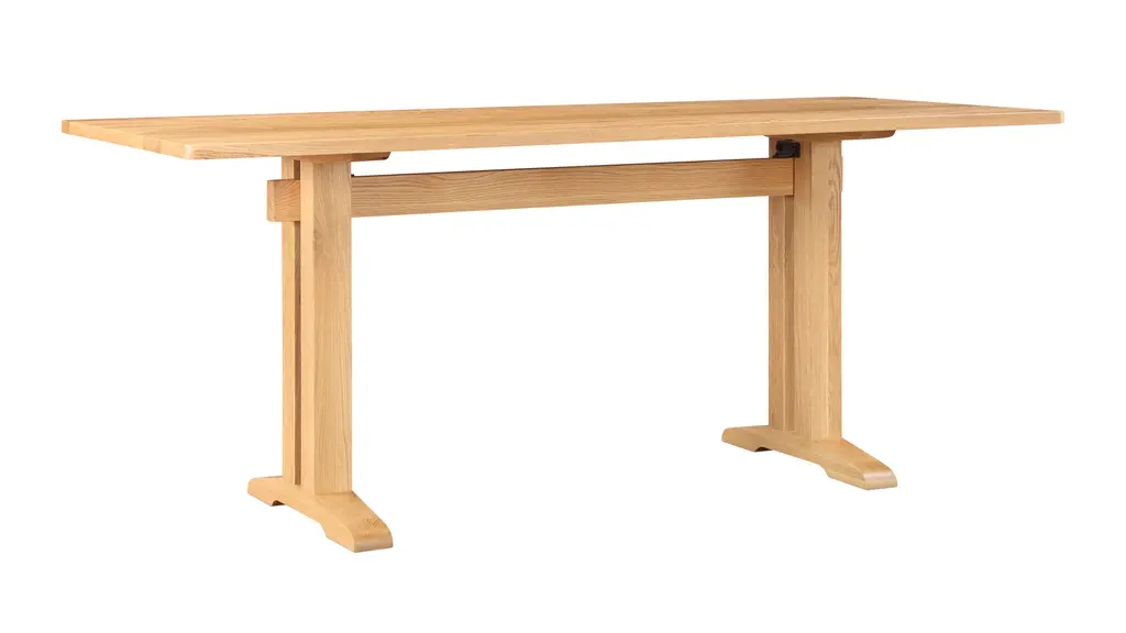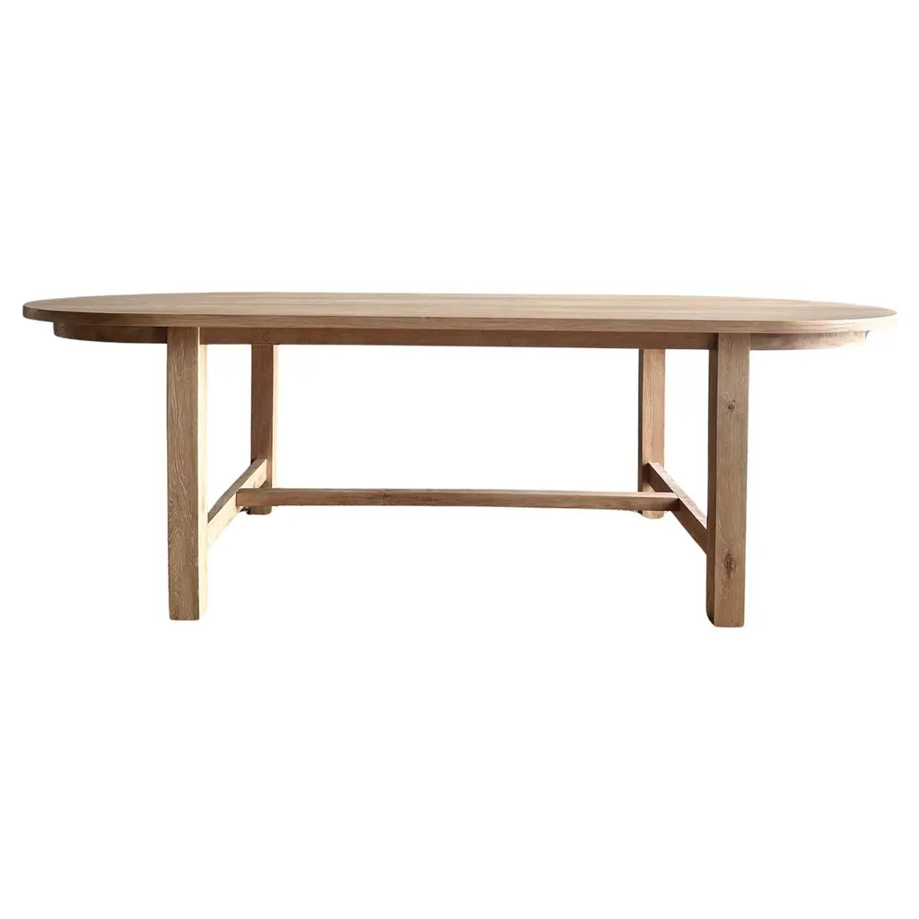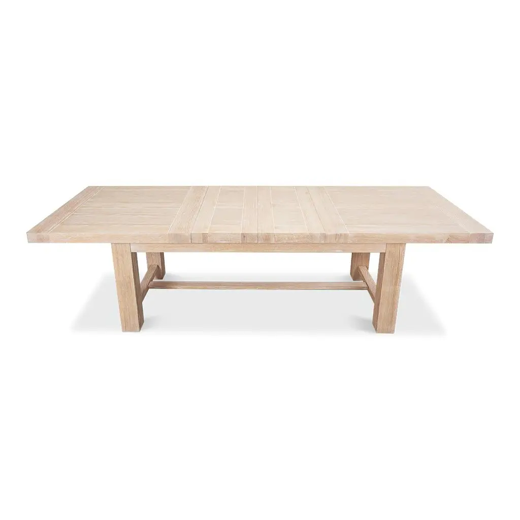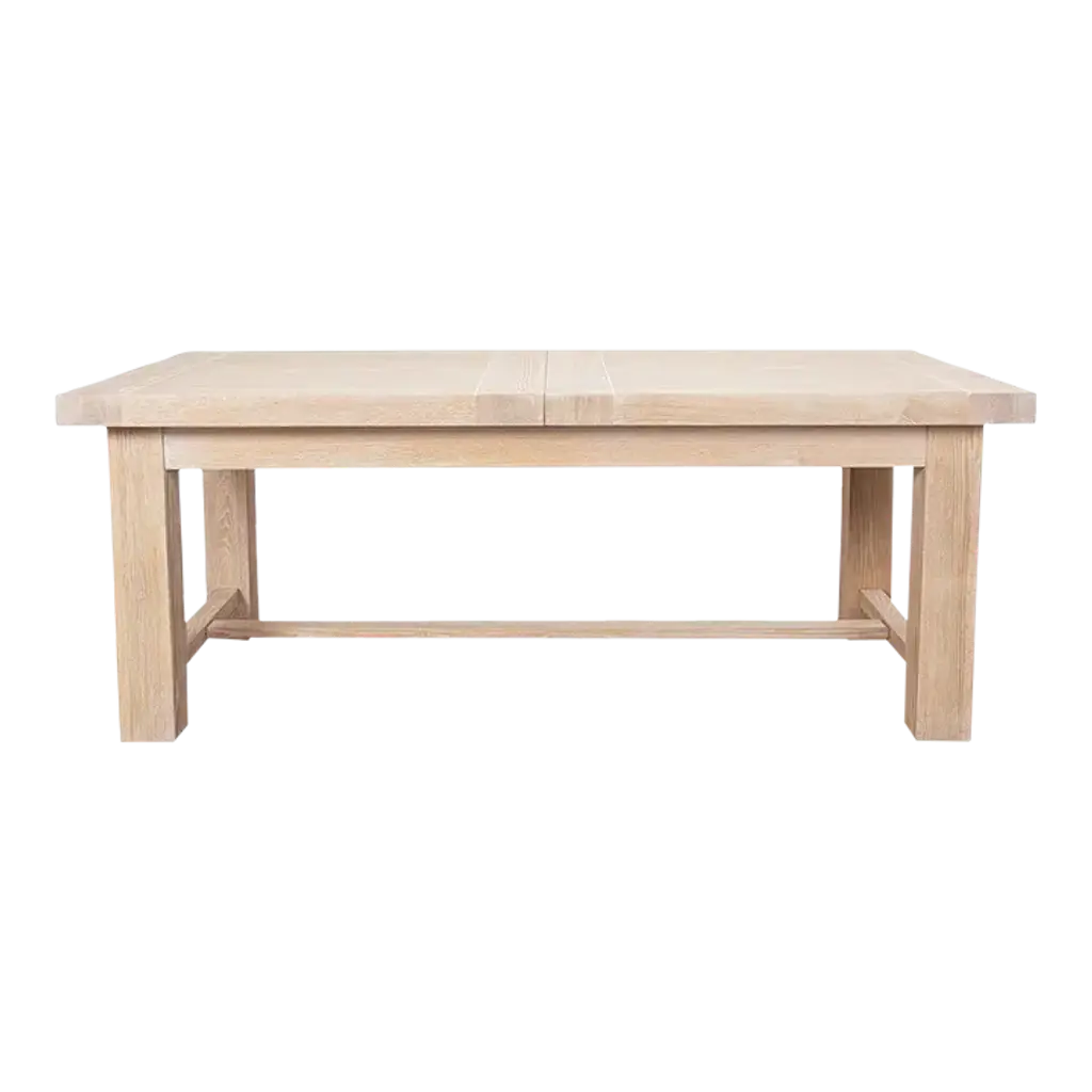 A Swedish modern oak extension dining table. This contemporary bold thick top oak dining table is raised on a substantial base with an H stretcher. Open dimensions: 110" W x 39" D x 30" HClosed dimensions: 78" W x 39" D x 30" Hwith 2 16" leaves.