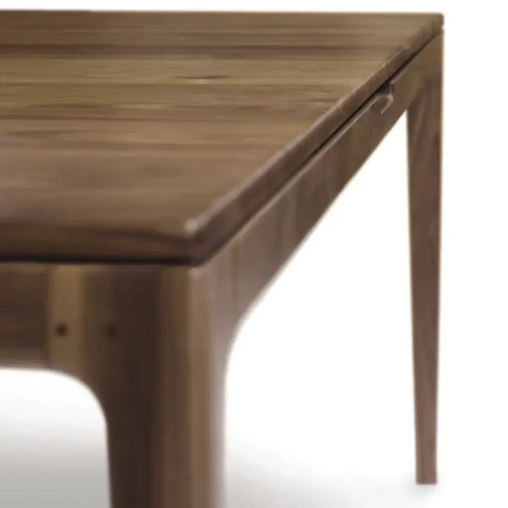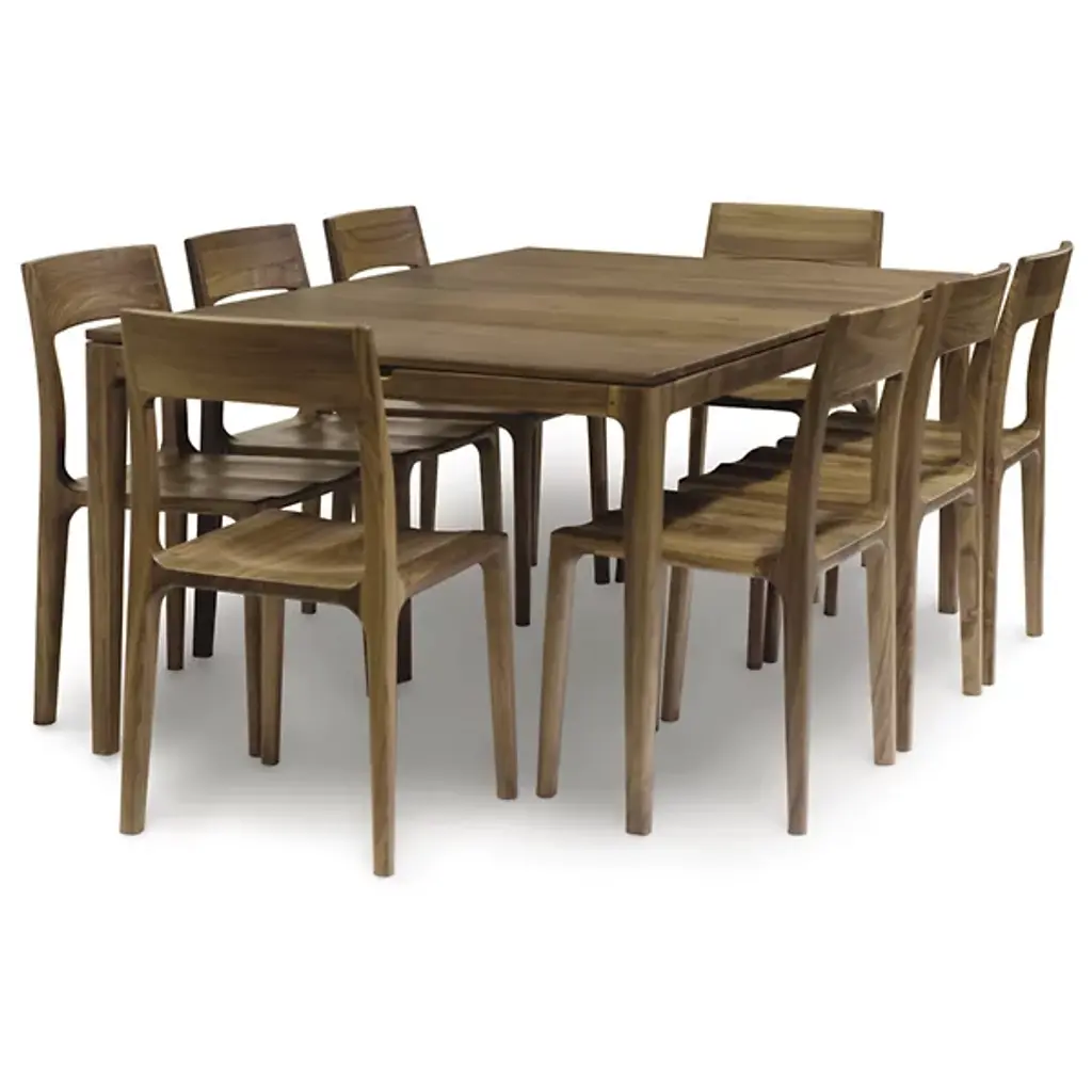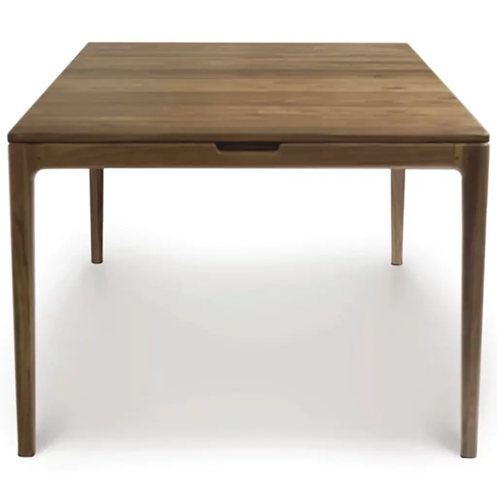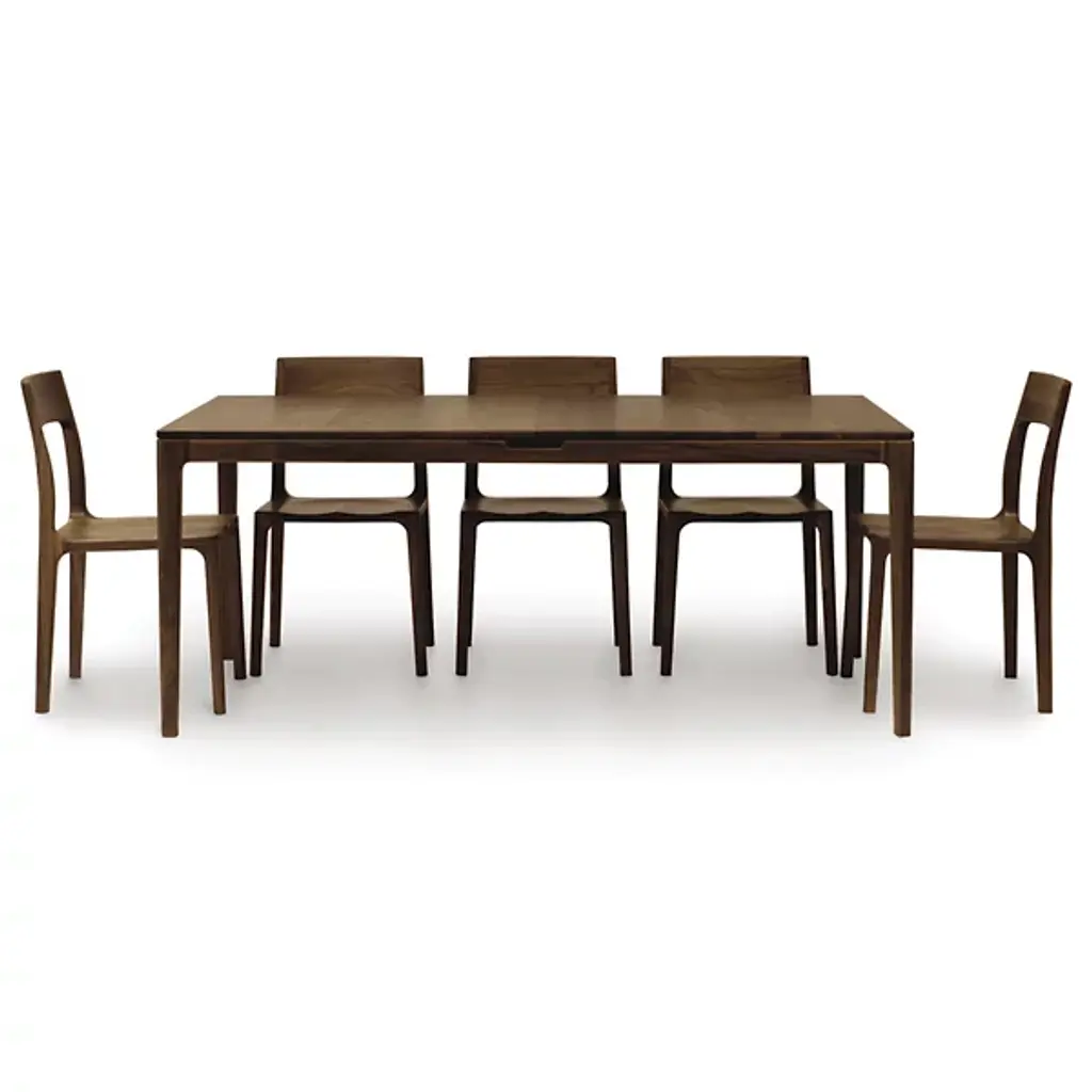 A delightful blend of style and modern convenience, the Lisse 42" x 72" Extension Table by Copeland Furniture makes a statement inside a contemporary-style home. This stylish extending dining room table will quickly become the focal point of weeknight meals, weekend brunches, family holidays and everything in between. Made from strong black walnut hardwood with a stylish finish, this table thrives in a modern design scheme. This indoor table is built with self-equalizing, ball-bearing extension glides that allow the table to go from 42 to 72 inches in no time. Use this table to elevate your indoor dining spaces for years to come.