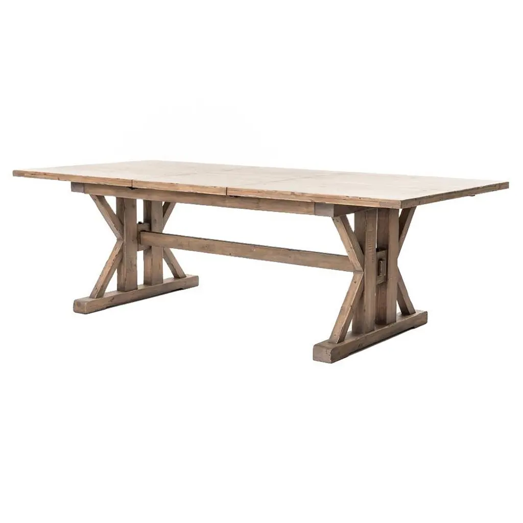 Lyle Lodge Natural Reclaimed Wood Trestle Extendable Dining Table - 72-96"w