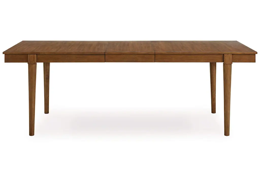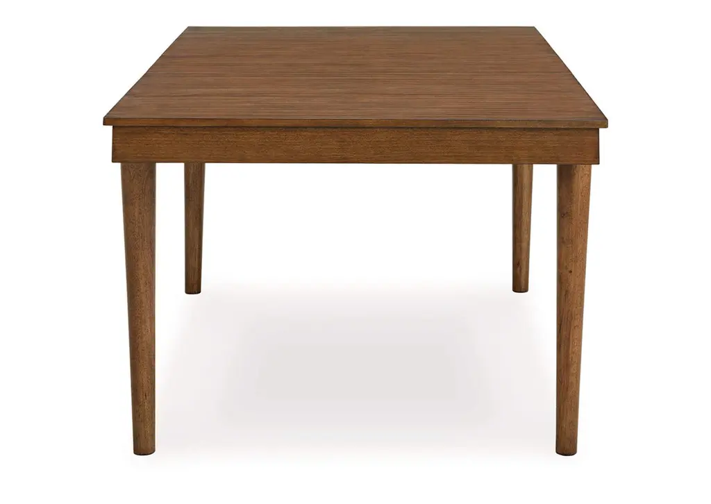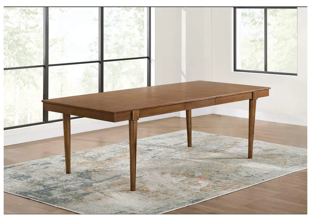 A refreshed take on retro aesthetics. The Lyncott dining table adds an air of playful simplicity to your dining space, capturing the architectural language of mid-century stylings. Subtle in design, it invites the eye with a sleek, open frame. A casual, yet timeless, finish and removable extension leaf complete this study in form and function. Weight 155.000 lbs. (69.75kgs.)